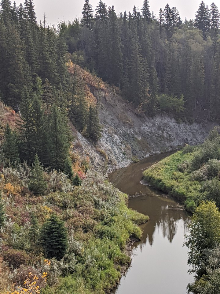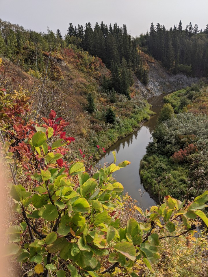 무서운 것도, 위험한 것도 잊고 서 있다. 자칫하면 수십 미터 아래로 떨어질 판인데 그저 뛰는 가슴으로 바라본다. 오색찬란한 단풍들이 눈앞에 서있고 강물이 흐른다. 구름 한 점 없는 하늘은 파랗고 새소리마저 들리지 않는 숲 옆에 있는 계곡 꼭대기에 서서 시간 가는 줄 모르고 쳐다본다. 이곳을 바라보기만 했다면 이런 짜릿한 감정을 알 수 없을 것이다. 오늘 오지 않았다면 내년에도 오지 못할 것이라는 생각을 하며 걷는다. 아무도 없는 숲은 그저 자연의 모습 그대로다. 노랗고 빨갛게 물든 나무들이 할 일을 다한 듯이 한가로이 바람에 흔들린다. 먼저번 왔을 때는 남자 하나가 개를 데리고 산책을 했는데 오늘은 아무도 없다. 아름다움에 팔려 앞으로 걸어간다. 오솔길은 포장도로 가까이까지 연결되어 있다. 강을 끼고 길을 따라 걸어 올라간다. 길 건너 다리 아래에서 아이들이 논다.