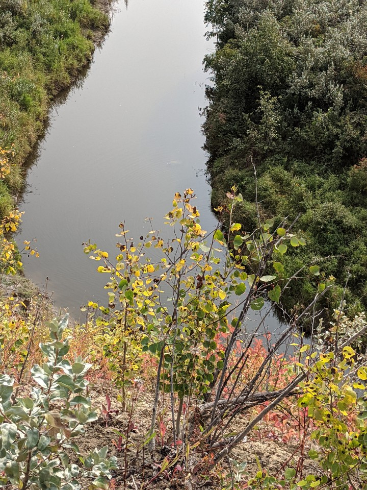 동물들이 다녀간 발자국이 여기저기 보인다. 발아래로 수십 미터 떨어진 곳에 유유히 흐르는 강물을 보니 아찔하다. 오솔길을 따라 나뭇가지를 헤치며 걸어간다. 다행히 어릴 때 등산으로 굳어진 몸이 아직 기억을 하는지 넘어지지 않고 잘 다닌다. 혼자는 못 갈길을 남편과 함께 서로를 믿고 의지하니 무섭지도 두렵지도 않다. 혼자보다 둘이 좋다는 것을 실감한다. 강가라서 그런지 갈대와 버드나무가 군락을 이루며 바람에 흔들린다. 다리 밑을 걸으며 땀을 식힌다. 갈까 말까 망설이다 다녀오니 기분이 좋다. 무섭다고, 힘들다고 가지 않았으면 '가볼걸' 라며 후회할 텐데 말이다. "그래, 오늘 다녀오길 잘했어. 오늘 못 가면 내일도 못가".라고 말하며 남편과 웃는다. 지금 할 수 있는 일을 내일로 미루면 영원히 못할 수도 있다. 하늘도, 구름도 잘 다녀왔다고 박수를 쳐준다.