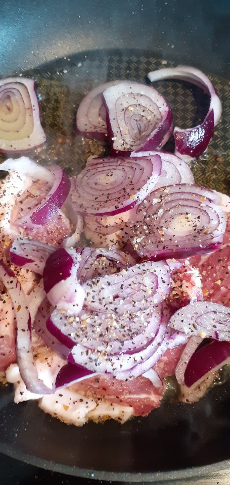 나머지 한 덩어리는 아이들이나 매운 것을 못 먹는 식구들을 위해 소금으로 간한 소금구이를 만든다. 고추장 돼지고기처럼 얇게 썰어서 기름 두른 프라이팬에 양파와 마늘을 넣고 소금 후추로 간을 해서 볶아주면 된다.