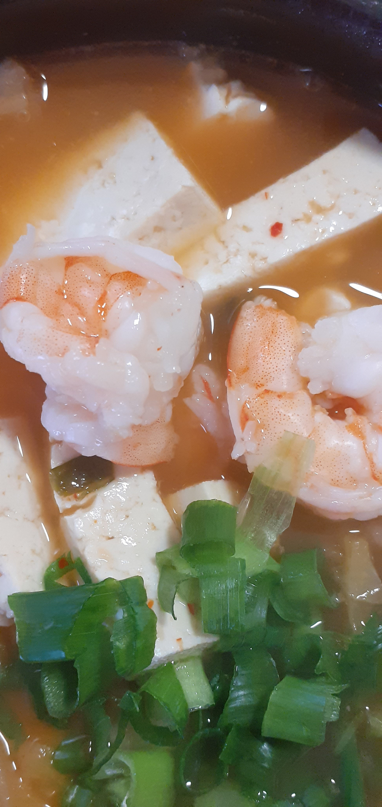 다른 한 덩어리로 신김칫국을 만든다. 냄비에 멸치로 육수를 만들고 멸치는 꺼내 버린다. 김치는 잘게 썰어 넣고 두부와 돼지고기도 손가락 크기로 잘라 넣고 끓인다. 김치가 들어갔으니 특별한 양념이 필요 없다 소금과 마늘 그리고 간장 한 숟갈을 넣고 강불에 한번 끓이고 중불에 끓이면 고기와 두부에 간이 배고 시원한 김칫국이 된다