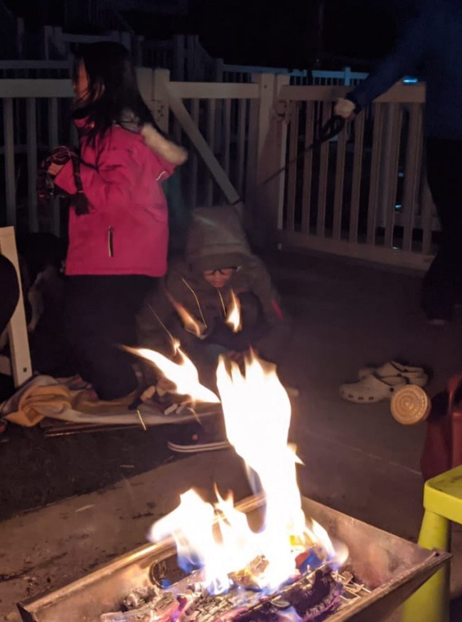 그래도 다행인 것은 학교나 어린이집에서는 방역 수칙을 지키며 나름대로 조촐한 핼러윈 파티를 했다. 몇몇이 앉아서 파티한 사진을 아이들이 보내주었다. 예전에는 부모들과 친척들 그리고 친구들까지 가서 아이들의 재롱을 보며 아이들의 흥을 돋우어 주었는데 올해는 선생님이 아이들 몇 명과 야외에서 작은 파티를 하는 사진이다. 오랜만에 삼촌이 왔지만 집안에 들어갈 수 없으니 마당에서 불을 지피며 손주들이 나름대로 코로나식의 핼러윈 데이를 보내는 사진도 보냈다. 나름대로 지혜로운 방법으로 이렇게 지나간다. 불평과 불만이 가져다주는 것은 아무것도 없다는 것을 아는 슬기로운 인간의 지혜는 또 다른 방식의 코로나식 핼러윈을 대처하는 방식을 만들어 내었다. 언제나 그랬던 것처럼 받아들이며 살아간다. 삶은 자연 같아서 흐르는 물길을 따라 조용히 흐른다. 어제의 세상이 사라지고 오늘의 세상을 받아들이며 산다.