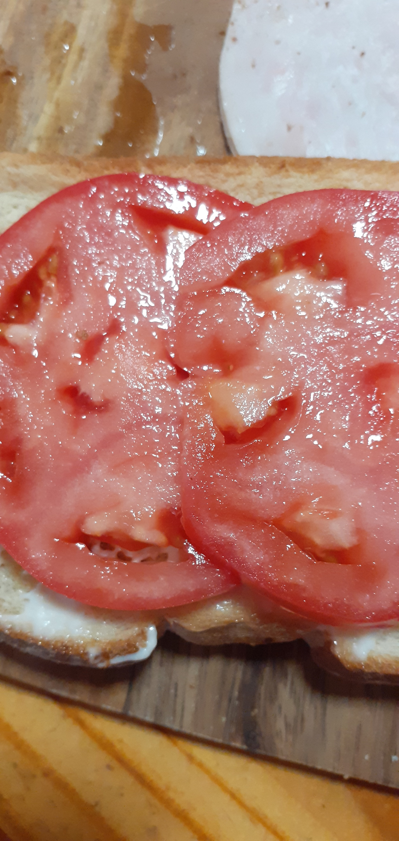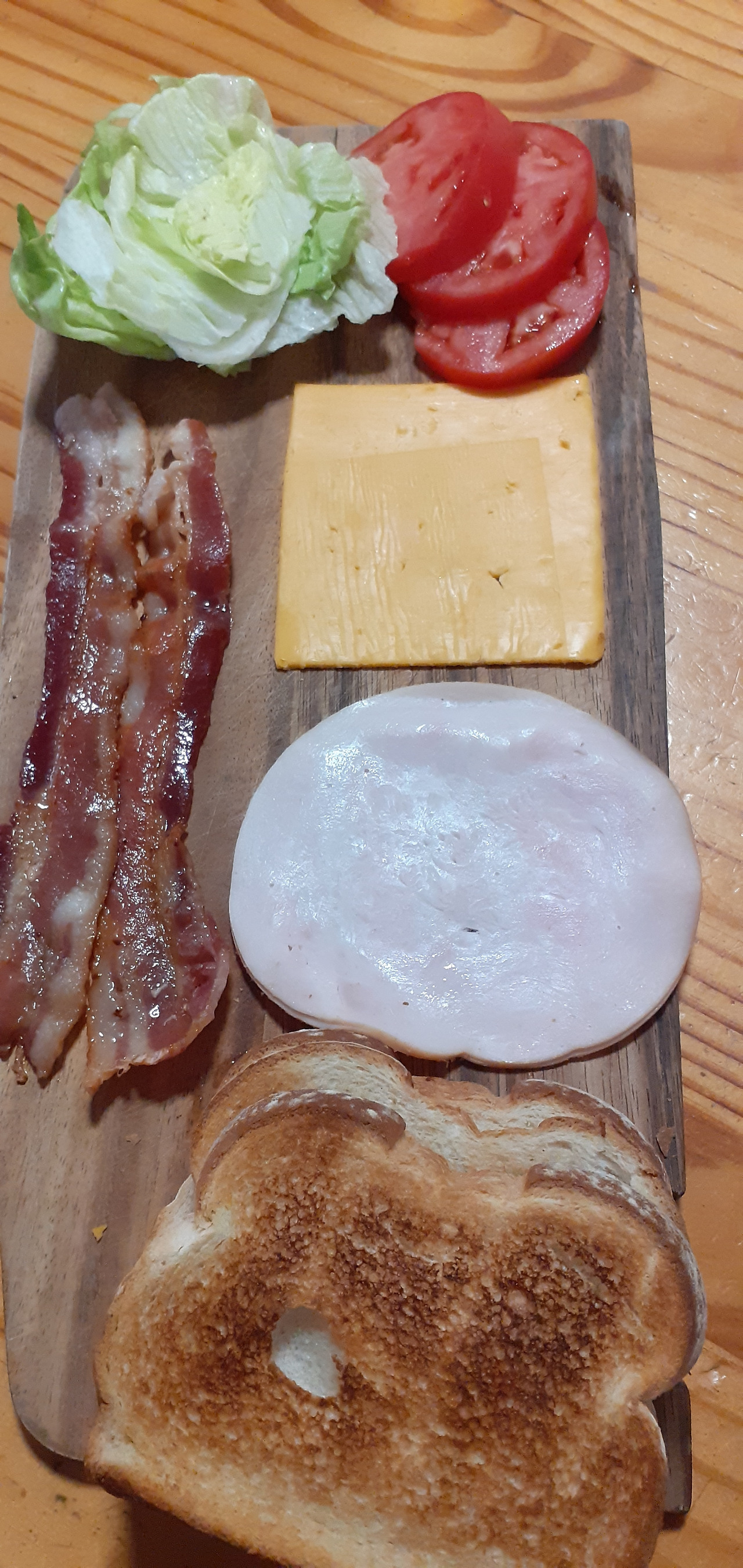 빵 3쪽 터키 고기 1-2장 구운 베이컨 2개 치즈 1장 상추 몇 장 토마토 2-3쪽 마요네즈 한 숟가락