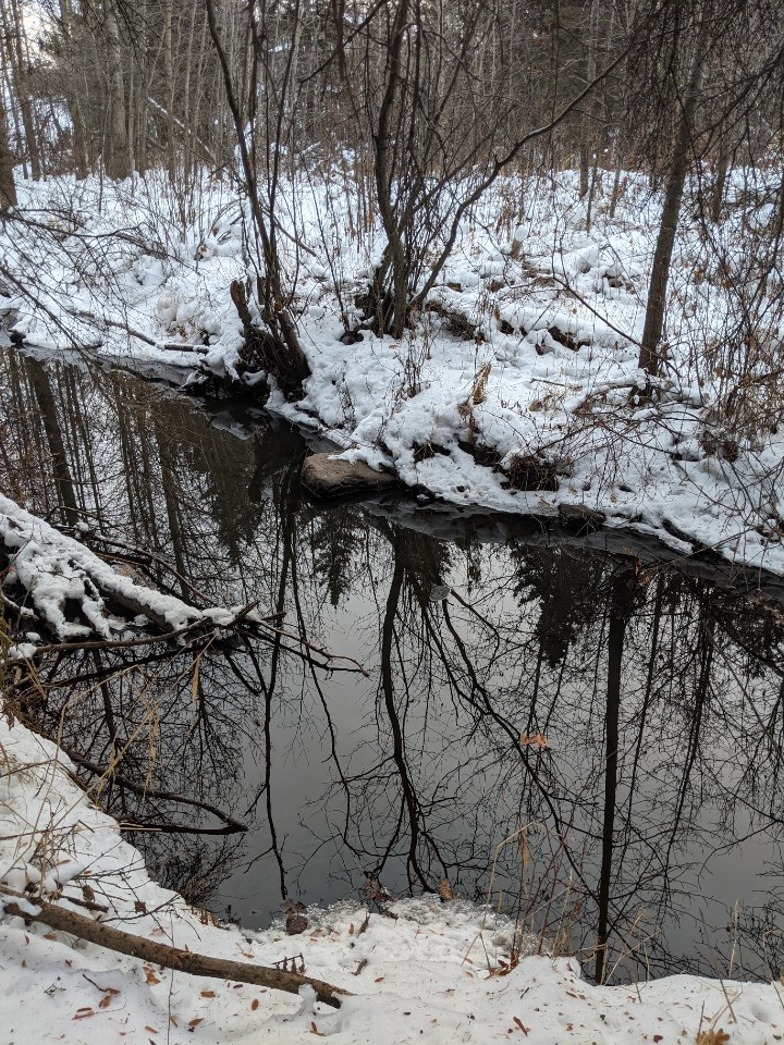 아무것도 없는 추운 겨울에 눈을 맞으며 봄을 준비한다. 길이 없는 줄 알았는데 숲 가운데에 있는 새로운 길로 걸어간다. 처음 걷는 길은 언제나 새롭다. 나무들의 모습도 예쁘고 계곡도 아름답다. 자연이 만들어 놓은 숲길을 걸어가는데 나무 사이로 비치는 눈부신 해가 따사롭다. 오르고 내려가다 보면 어느 곳은 바람도 없이 따뜻한 곳이 있고 어느 곳은 싸하여 추운 곳이 있다. 나무 몇 개 사이로 온도 차이가 난다. 옷깃을 여미고 모자를 고쳐 쓰고 열심히 걷는다. 겨울인데도 얼었다 녹은 계곡물이 흐르고 계곡 옆에 서 있는 나무들이 물에 비친 모습이 너무 아름답다. 아무것도 하지 않는 듯 하지만 무언가를 한다. 다람쥐들도 눈 쌓인 숲 속에서 나름대로 먹을 것을 찾아내어 먹는다. 날씨가 좋아서 사람들이 자전거를 탄다. 몇 명이 단체로 와서 신나게 타는 모습이 좋다.