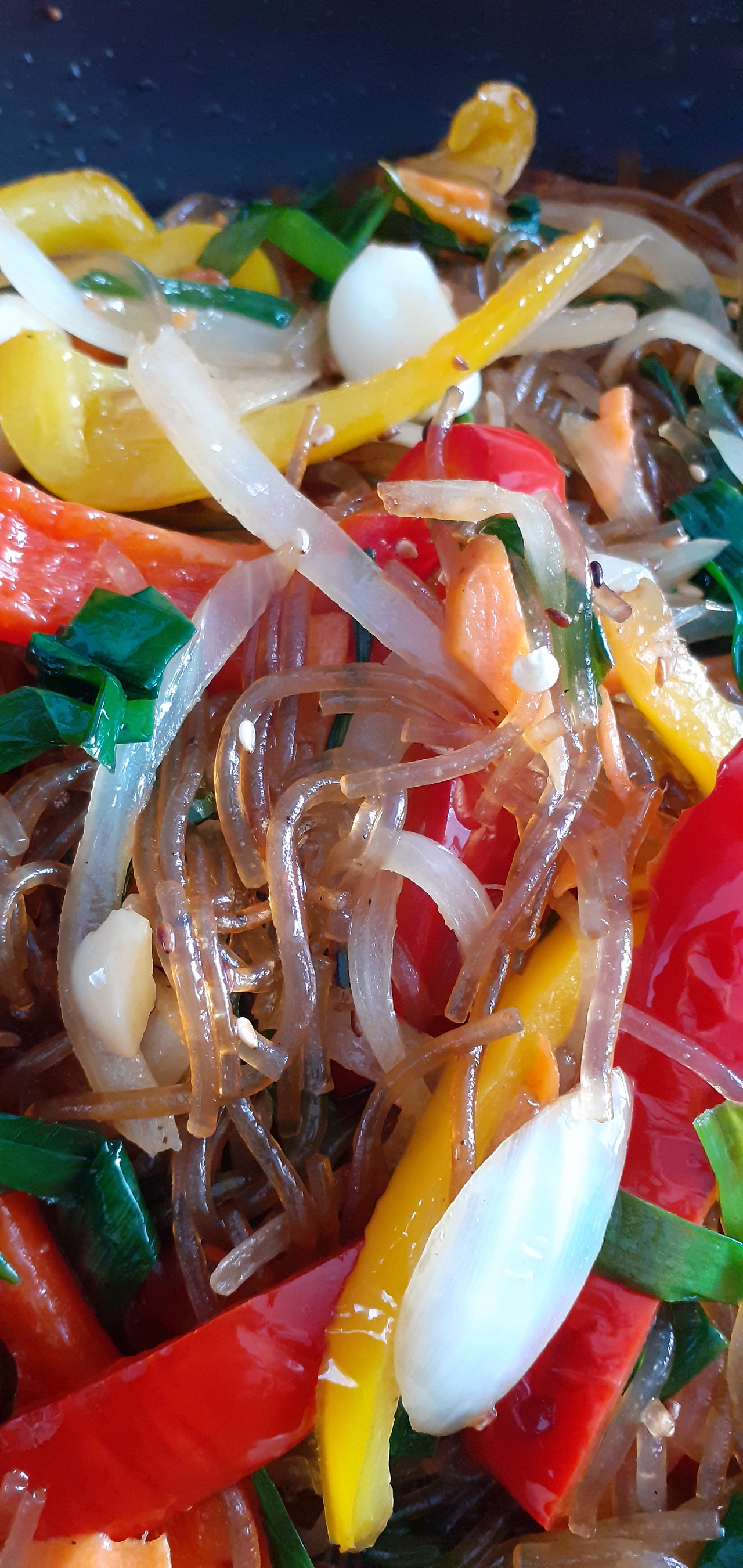 잔칫날이나 손님들이 많이 오는 날에 엄마는 커다란 양은그릇에 당면과 볶은 야채를 넣고 양념을 하여 무친다. 올망졸망한 우리 6남매는 그릇 옆에 쪼그리고 앉아서 눈은 잡채를 무치는 엄마의 손을 따라간다. 엄마는 노련하게 손을 움직이며 간을 보신다. 우리는 침을 꼴깍 삼키고 엄마는 차례대로 간을 보라며 잡채를 손으로 똘똘 말아서 우리들 입에 넣어주신다. 어찌 그 맛을 잊을 수 있는가? 엄마의 맛을 따라갈 수 없지만 이제는 나도 엄마처럼 잡채를 만들며 아이들에게 간을 보라고 입에 넣어준다. 아이들은 엄마 잡채가 최고라고 엄지 척을 올린다.