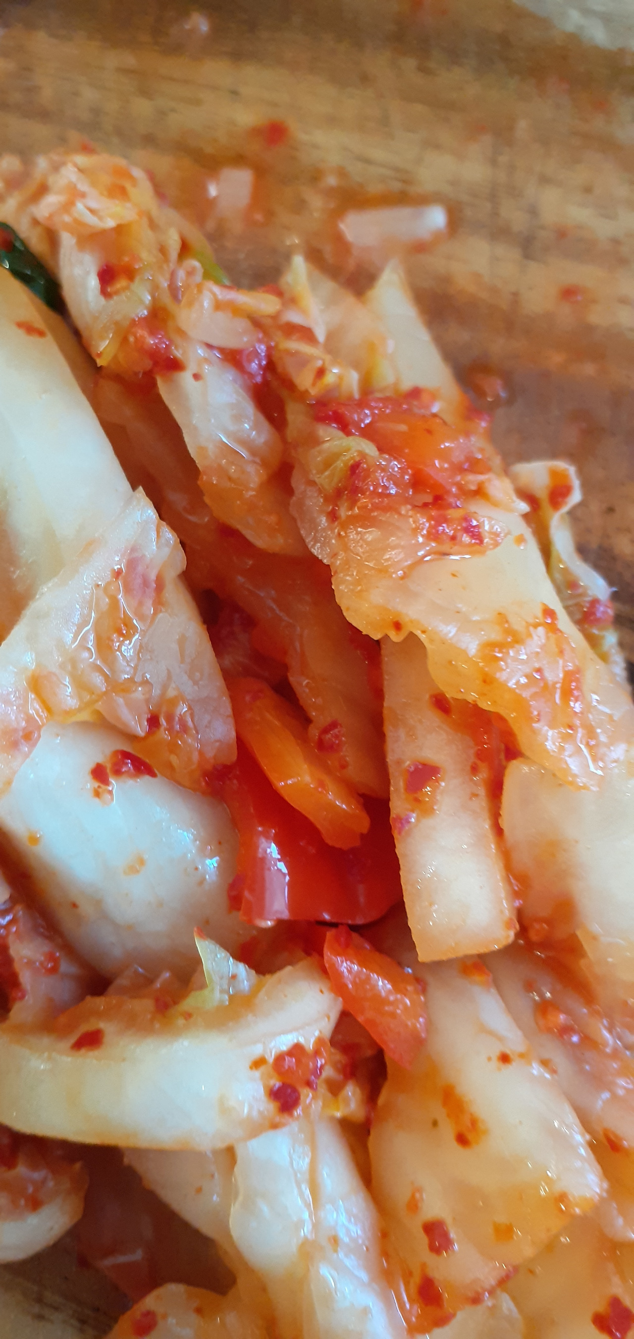 사람을 만나는 것도, 어디를 가는 것도 다 불안한 현실에서 다른 것은 못해도 먹는 즐거움을 빼앗을 수는 없다. 김칫국 한 그릇에 잠시라도 코로나의 불안에서 벗어나 본다. 집에 가만히 있으라고 애원하는 슬픈 얼굴이 생각난다. 먹어도 먹어도 질리지 않는 김칫국을 먹으며 당분간 밖에 나가지 않고 집에 있어도 될 듯하다. 빨리빨리 코로나를 벗어나는 일상이 되면 좋겠다.