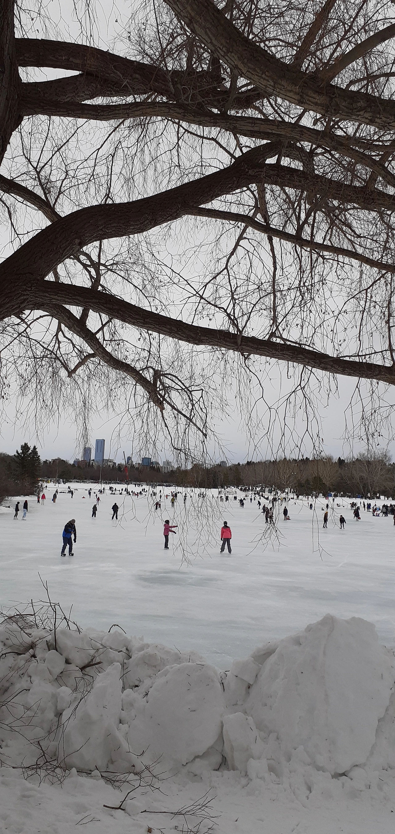 여름에는 커다란 호수에 오리들이 헤엄을 치고 호수가 어는 겨울에는 사람들이 스케이트를 탄다. 넓은 공원에 눈이 쌓여 스키를 타는 사람도 있고 아이들이 미끄럼을 타기도 한다. 날씨가 따뜻하여 사람들이 즐길 수 있어 다행이다.