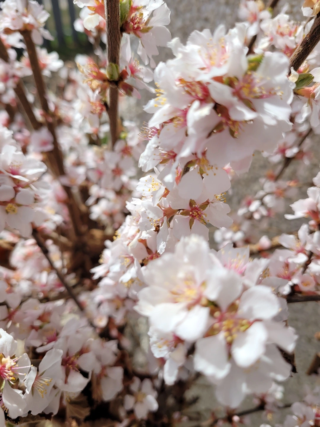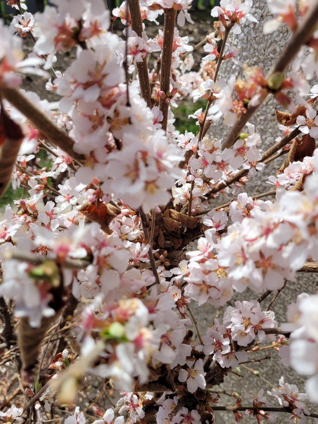 차고 뒤편에 있는 달래도 한 뼘 정도 자라서 봄을 맞고 있는데 며칠 내로 밥상에 올라올 수 있을 것 같다. 이렇게 봄이 오면 좋은데 그토록 오는 길이 험해서 이제야 봄을 만나는데 아직도 바람은 차다. 뒤뜰에 앵두나무는 연분홍색 꽃을 한 아름 안고서 세상을 환하게 밝히고 있다. 지난겨울이 별로 춥지 않아서 인지 올해는 꽃이 많다. 벌들이 와야 하는데 날씨가 쌀쌀하다 보니 벌들이 오지 않는다. 먼저 핀 꽃들은 벌써 시들고 아직 피지 못한 꽃들은 앞을 다투며 피는데 가지가 휘어질 듯 만발했다. 며칠 피었다가 지는 것을 아는지 최선의 모습을 보여준다. 꽃이 피지 않았을 때는 꽃이 필까 하며 기다렸는데 눈곱만 한 봉우리들을 달고 있었다. 언제 꽃이 필까 했더니 벌써 피었다 지는 꽃도 있다. 꽃이 만발하니까 벌을 기다리고 벌이 오지 않아 걱정을 한다. 걱정도 팔자라더니 별것 다 걱정하고 산다.