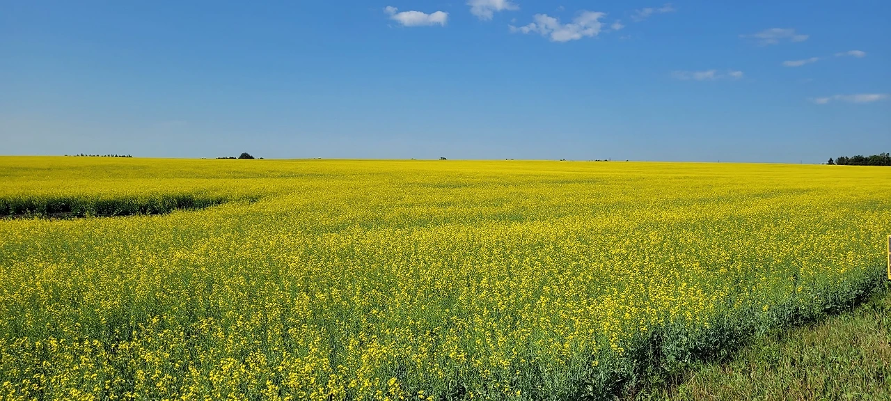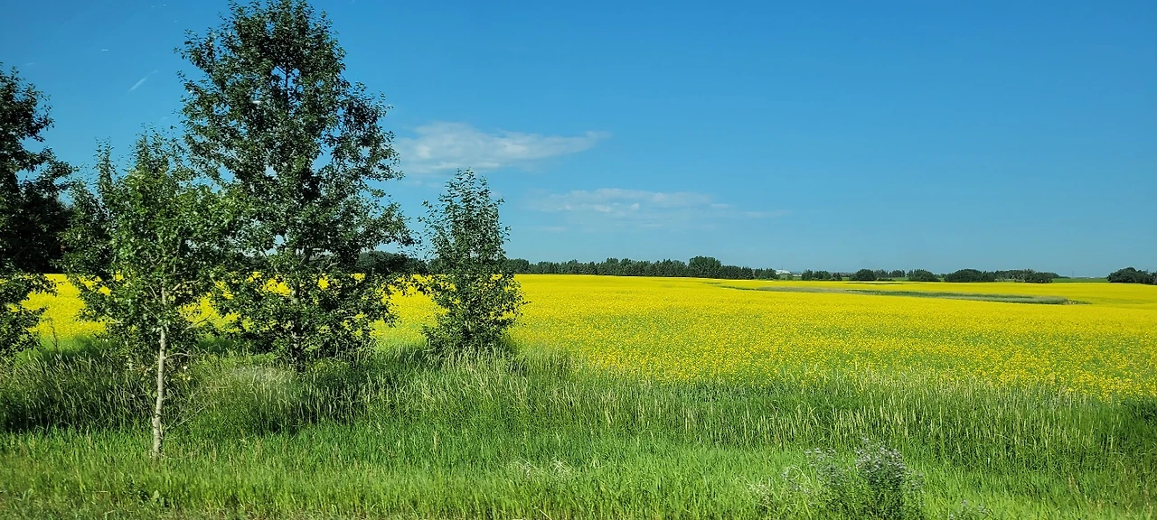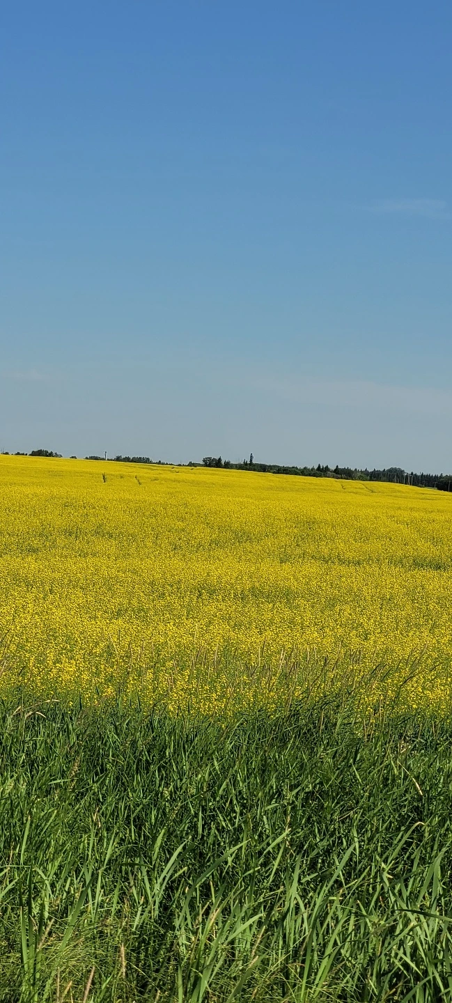 창조주는 기가 막힌 화가임에 틀림없다. 어찌 저리도 세상을 노랗게 물을 들여놓았을까 감탄에 감탄을 한다. 노란 물감으로 들판을 노랗게 물을 들였다. 끝없이 펼쳐진 들판을 바라보며 한없이 간다. 유채밭과 밀밭이 가뭄과 폭염을 이겨내며 씩씩하게 버티며 넓은 들판을 묵묵히 지킨다. 색이 너무 고와 그냥 지나쳐지지 않는다. 연신 감탄사가 나온다. 마땅한 곳이 있으면 차를 세워놓고 사진을 찍고 싶은데 고속도로에서는 불가능하다. 일단 눈호강이나 실컷 하며 앞으로 계속 간다. 매년 보는 유채꽃인데 볼 때마다 새롭다. 제주도 관광 홍보로 많이 보는 유채꽃인데 이곳은 그리 멀리 가지 않아도 이맘때면 눈에 노란 물감이 들 정도로 유채밭이 많다. 말들이 들판에서 평화롭게 서서 풀을 먹고 건초들이 여기저기 놓여있다. 짧은 여름 한철 농부들은 추운 겨울에 동물들에게 먹이기 위해 부지런히 만들어 놓아야 한다.