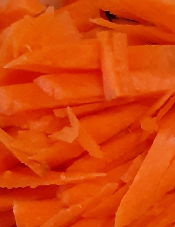 당근을 가늘게 채를 썰고 오징어도 동그랗게 자른다.