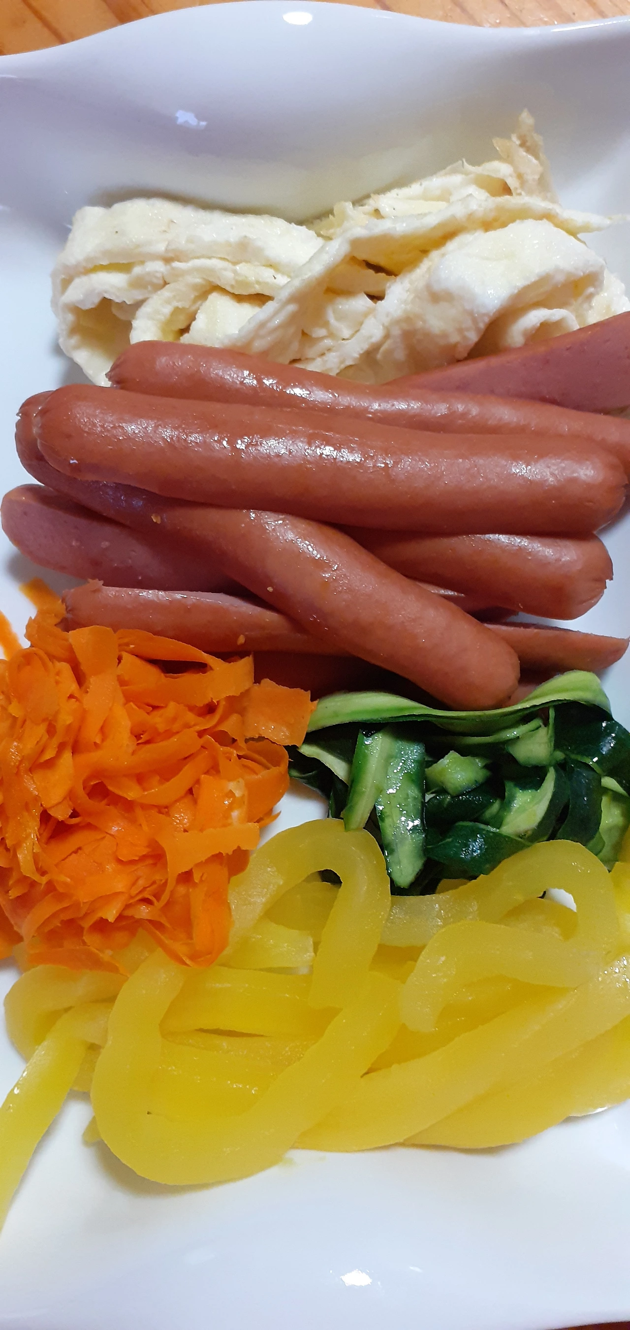 냄비에 물을 끓여 소시지를 살짝 삶아낸다