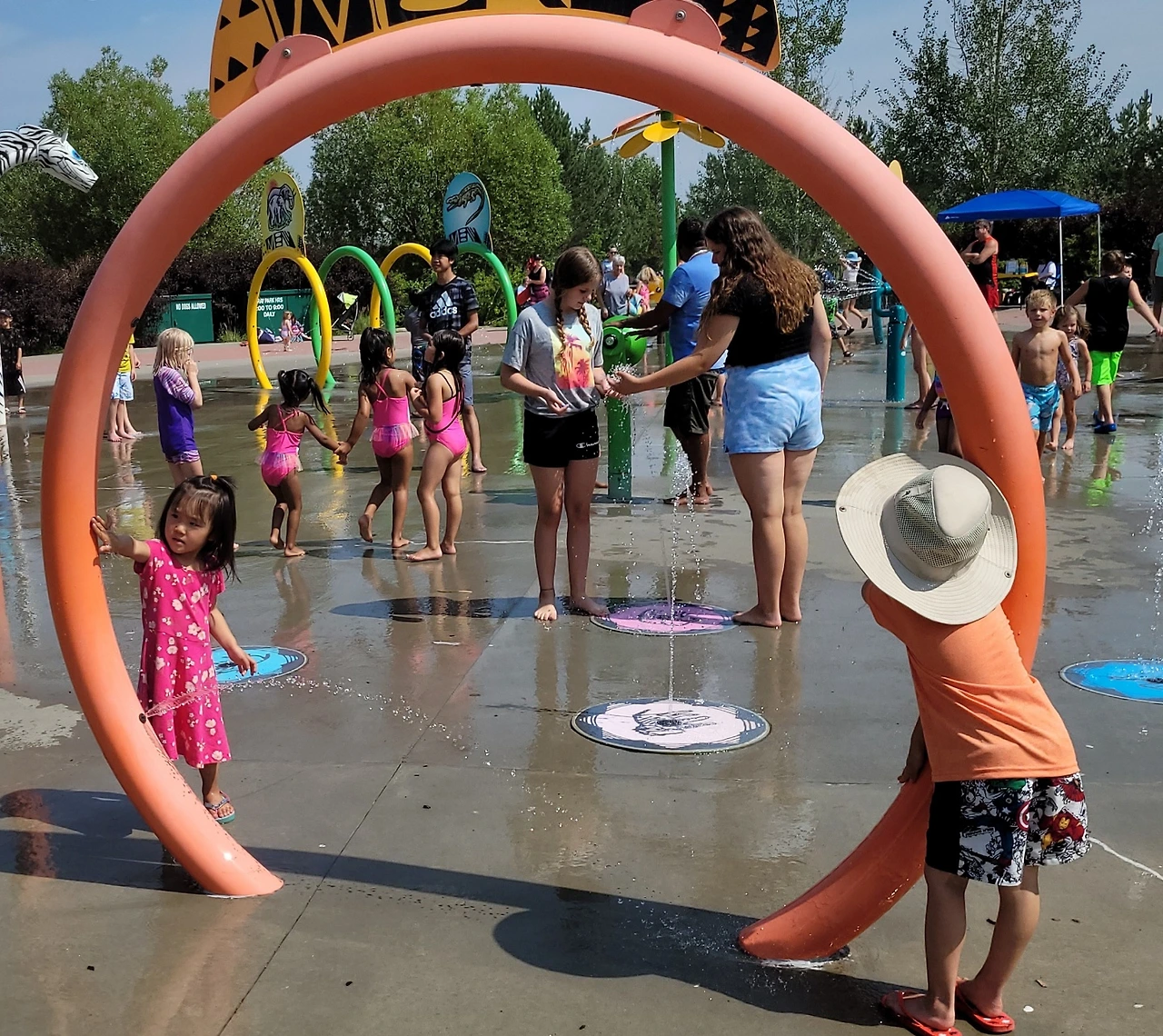한참을 놀더니 건너편에서 물장난을 하며 노는 아이들이 재미있어 보였는지 그곳에 가서 놀겠다고 한다. 처음에 싫다고 하던 꼬맹이들이 내 손을 잡고 한발 두발 물 놀이터로 들어가 걸어보니 시원하고 좋은지 놀기 시작한다. 여러 가지 모양의 분수로 만들어져 걷다 보니 조금씩 옷이 젖는다. 여전히 날씨가 뜨거워 물에서 놀으니 나도 시원하다. 물을 퍼 담으며 놀기도 하고 바닥에 난 물구멍을 막아 보기도 한다. 아래서 나오는 물을 막으면 다른 구멍의 물이 더 세계 나오는가 하면 다섯 개의 구멍을 다 막았더니 갑자기 다른 곳에서 물이 쏟아진다. 2년 전에 아이들이 왔을 때 김밥을 싸가지고 놀러 왔던 곳인데 그동안 코로나로 오지 못했다. 지난 7월 1일에 공공장소를 열게 해서 이곳도 열었는데 지나가다가 한번 와야지 했는데 오늘 오길 참 잘했다.