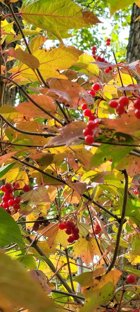 가는 길에 커다란 나무가 누워있어서 길이 없는 줄 알았는데 한참을 돌고 오니 그 자리로 다시 왔다. 시간은 많이 걸렸지만 더 많이 운동해서 좋다. 행복을 찾으려면 한참 걸리고 힘들어야 가질 수 있다. 아이들이 있을 때는 몸은 힘들었어도 손주들 재롱에 행복했는데 아이들이 가고 나니 몸은 편해도 심심하고 적적하다. 단풍이 빨갛게 들은 나무에 빨간 열매가 많이 열려서 몇 개 따서 먹어보니 오미자 맛이 난다. 몇 개 따먹었더니 갈증이 없어졌다. 사진을 찍으며 구석구석 구경하며 걷다 보니 끝까지 왔다. 만보 넘게 걸었다고 전화로 알려준다. 이만하면 잘 걸었다. 오늘 하루도 하늘 보고 단풍 보며 자연과 함께 잘 놀았다.