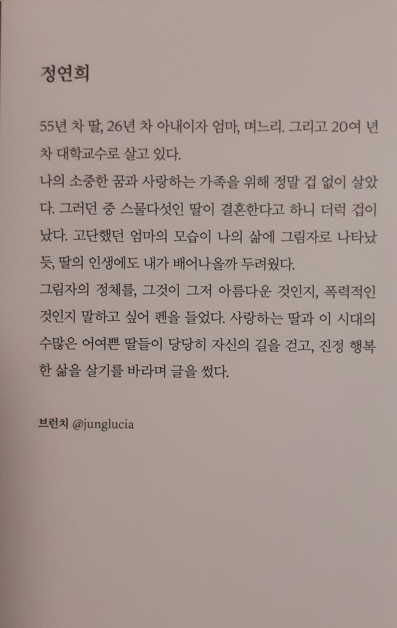(작가의 약력과 딸에게 전하는 말)