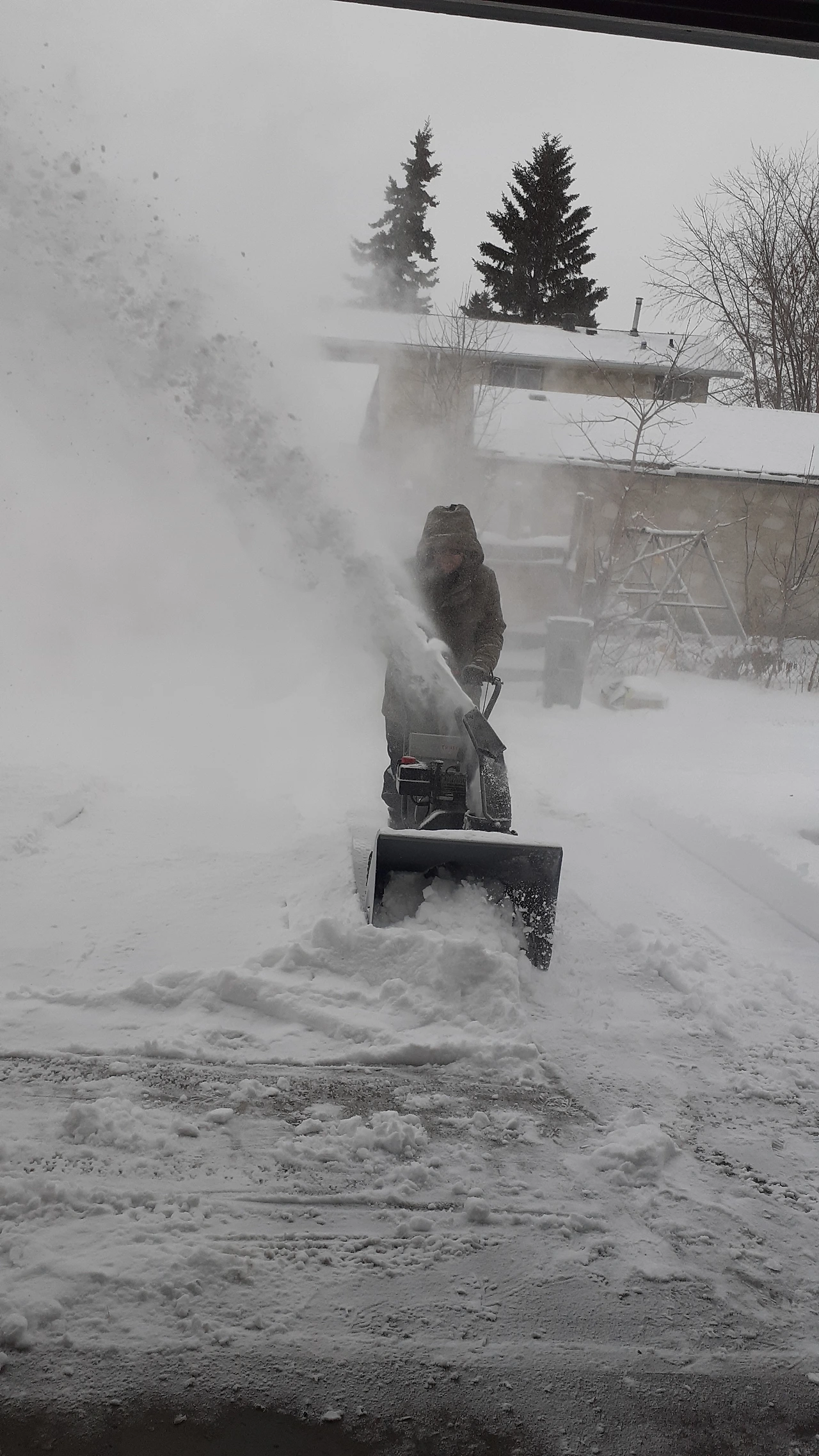 처음 몇 번 기능이 익숙하지 않아 힘들어하더니 얼마 지나지 않아 손에 익었는지 거침없이 눈을 치운다. 남편이 없었으면 아들을 기다리던지 아니면 사람을 고용해야 할 판인데 씩씩하게 하는 모습이 믿음직해 보인다. 알게 모르게 세월이 가고 결혼한 지 43년이 지나다 보니 남편이 나이 들어가는 모습이 보이는데 무거운 기계를 밀고 다니며 눈을 치우니 다행이다.