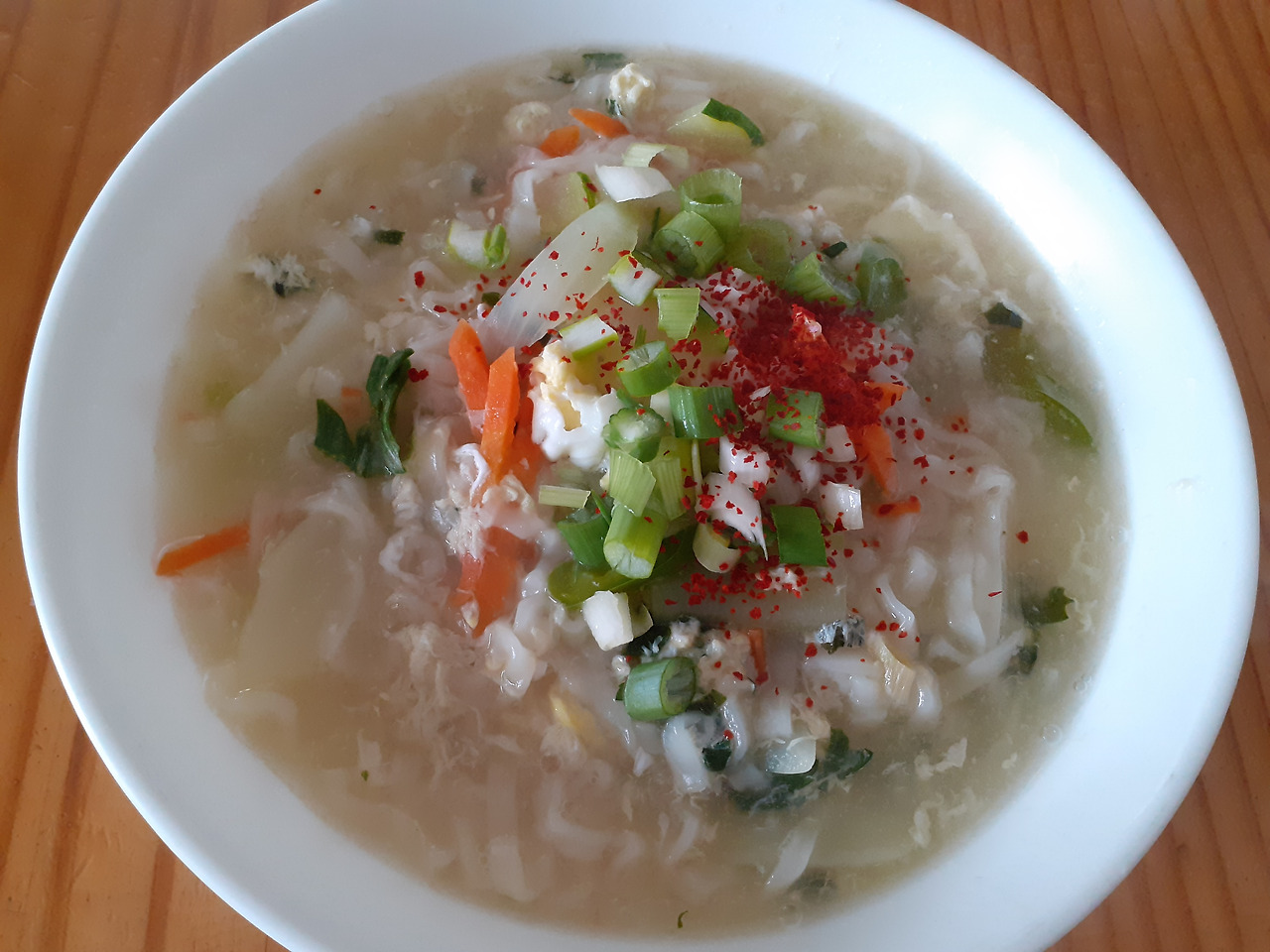 하나는 밀고 하나는 밀가루를 솔솔 뿌린다. 또 하나는 돌돌 말고 다른 하나는 도마에 놓고 예쁘게 썬다. 한쪽에서는 국물이 끓고 야채를 준비한다. 간을 맞추고 다진 양념을 만들어 식탁에 놓는다. 아이들 셋이 짝을 맞추니 여섯이 되었다. 여러 번 해 먹다 보니 모두가 전문가가 다 됐다. 상에 묻은 밀가루를 깨끗이 청소하고 열두 그릇의 칼국수가 상에 올려진다. 식구들의 생일날도, 크리스마스 때도 우리는 한 번씩 해 먹는다. 아무리 먹어도 질리지 않는 아버지표 칼국수가 너무 인기가 좋다. 큰며느리는 한국사람이니 당연히 좋아하고, 필리핀 며느리도 일본 사위도 잘 먹는다. 그 아이들이 연애할 때부터 집에 놀러 오면 해 주었으니 어떤 맛인지 다 안다. 추우면 추운대로 더우면 더운 대로 맛있는 칼국수다. 모두 모여 칼국수 한 그릇씩 먹울 때마다 우리는 더욱 정다워진다.