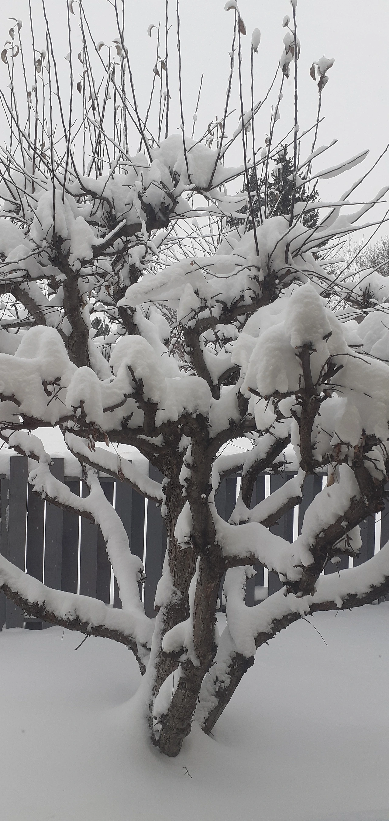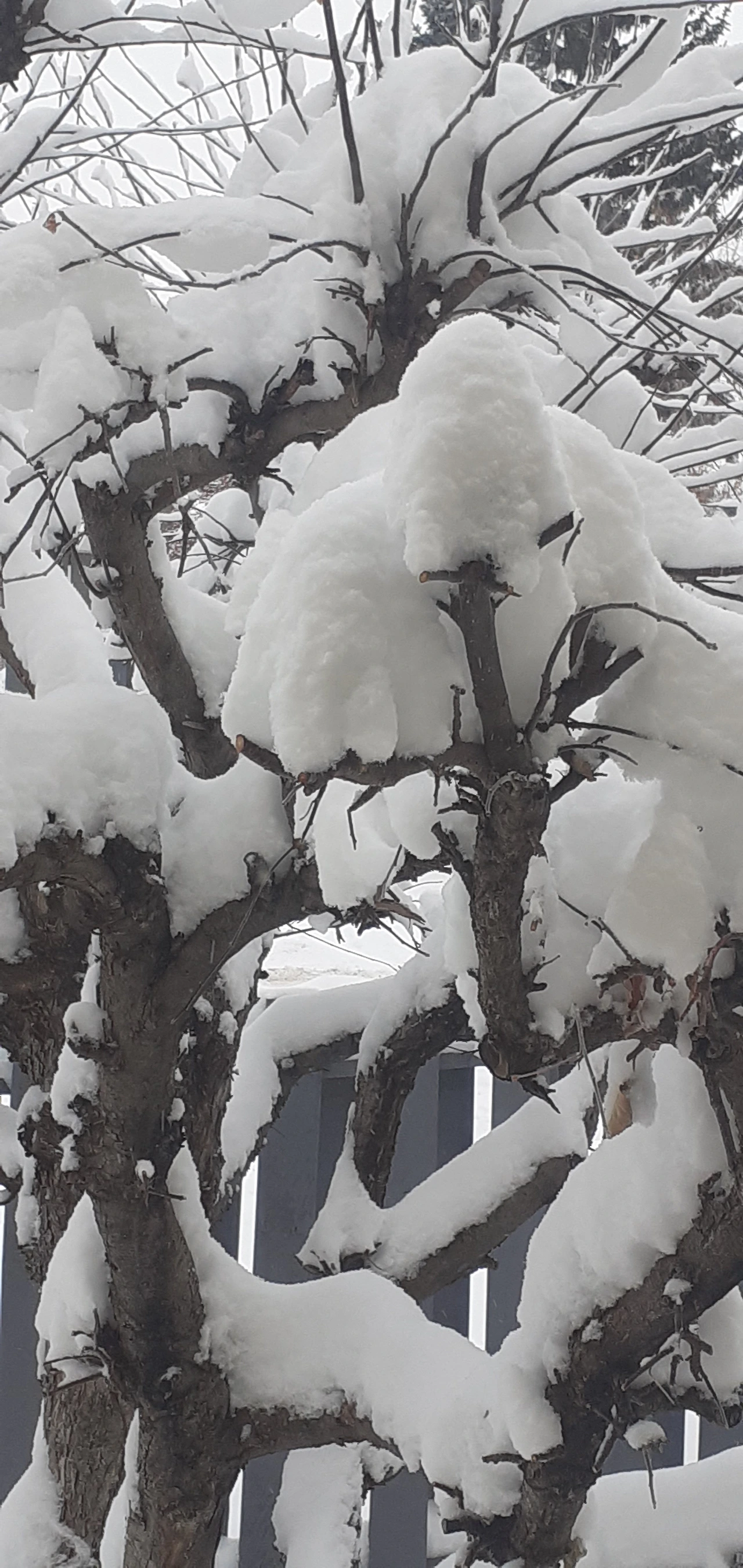 나무에 앉은 눈은 가지를 따뜻하게 덮어줍니다.