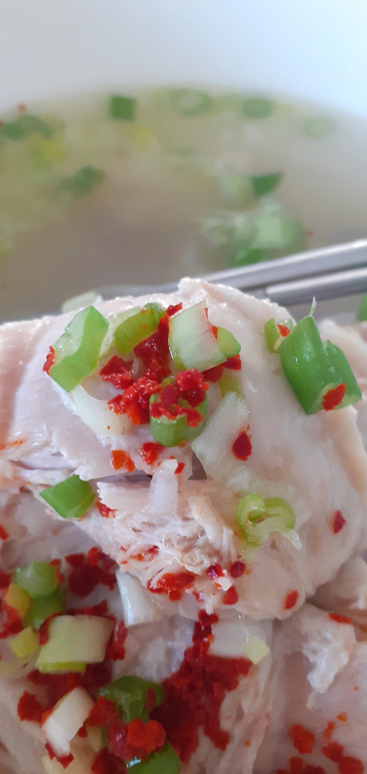 기운 없을 때 생각나는 음식은 역시 닭백숙이다. 손도 별로 안 가고 맛있고 기운까지 나게 해 주니 더 이상 좋은 음식이 없다. 이런저런 생각을 하고 있는데 닭이 냄비를 들썩이며 끓는다. 마늘을 한주먹 넣고 양파를 하나 넣어 끓이는 동안 파를 썰고 마늘을 다져 놓는다. 국물이 어느새 뽀얗게 우러나고 닭다리는 건드리기가 무섭게 빠질 정도로 푹 익었다. 큰 대접에 잘 익은 닭다리 하나 놓고 소금과 후추로 간을 한 국물을 담고 썰어놓은 파와 다진 마늘을 잔뜩 넣고 고춧가루를 넣으니 그럴싸하다.