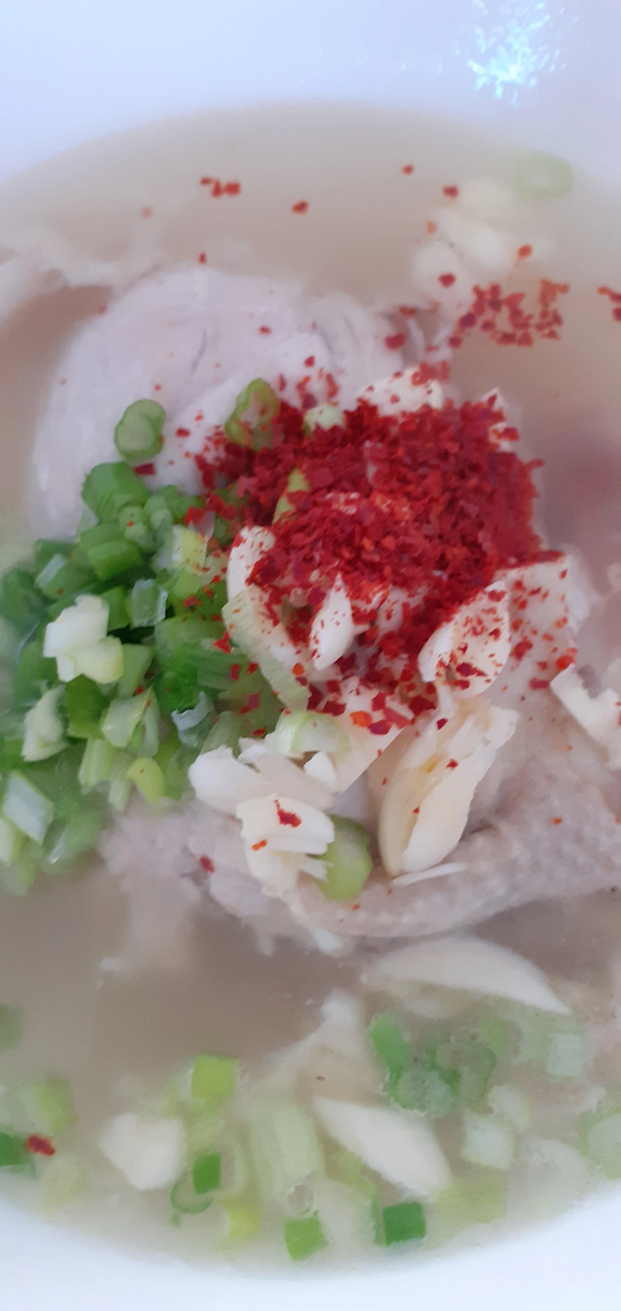 누군가가 옆에서 해주면 편하게 먹겠지만 공기로 옮기는 코로나이기 때문에 아무도 얼씬하지 못한다. 서로 만나지 않고 멀리 떨어져야 한다. 코로나 때문에 후각을 잃어서 냄새는 맡을 수 없지만 간이 맞으니 맛있다. 땀을 흘리며 국물을 마신다. 온몸의 세포로 국물이 스며들어 기운이 나게 했으면 좋겠다. 닭국물에 있는 영양으로 눈이 떠지고 어지럽던 세상이 잘 보인다.