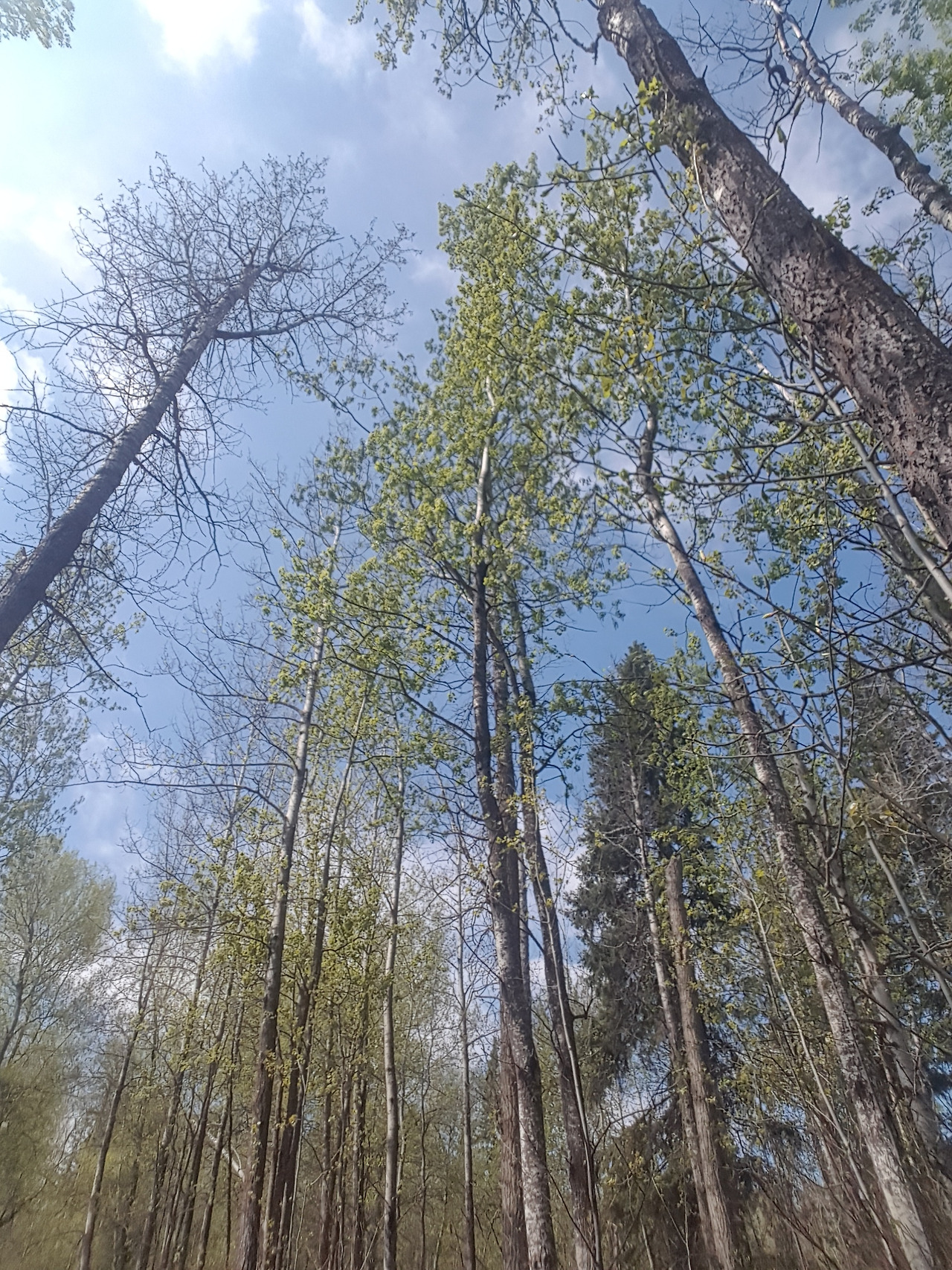 힘은 들었지만 학교에서 배운 여러 가지 상식으로 아이들을 키우는 데에도 많은 도움이 되었고 사춘기도 수월하게 넘기게 되었다. 내가 사람들의 말만 듣고 시도하지 않았다면 지금도 간호에 대해 전혀 아무것도 모르는 문외한 일 것이다. 모르면 모르는 대로 살면 되지만 뭐라도 배우면 나쁠 것은 없다. 하늘은 높고 파랗다. 남편과 이런저런 지난 이야기를 하며 숲 속을 뒤지며 새로운 길을 찾아가다 보니 산책길로 연결된 다리가 보인다. 지난번 오리 한쌍이 사랑을 나누던 강가이다. 살다 보면 생각지 않은 곳에서 좋은 인연을 만나기도 하고, 때로는 어쩔 수 없는 현실을 받아들여야 하지만 무엇이든지, 언제든지 원하는 것들을 할 수 있을 때 지체하지 말고 바로 해야 한다. 늑대 길이 무섭다고 머뭇거렸다면 오늘 숲 속에서 만난 나무들의 삶은 전혀 몰랐을 것이다. 봄의 파란 하늘이 내게 준 숲 속의 고귀한 선물에 감사하며 내가 걸을 수 있을 때까지 계속 숲을 찾고 숲과 대화하고 싶다.