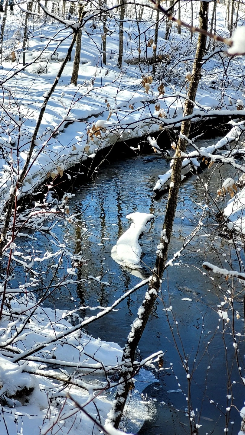 안개가 짙게 껴서 앞이 보이지 않는다. 어제 하루 종일 내리던 눈이 멈추고 상고대가 눈부시게 피어 보란 듯이 세상을 향해 서 있다. 해가 뜨면 상고대는 바로 녹아 서둘러 숲을 향한다. 아무리 겨울이 길어 싫어도 곱게 피어있는 상고대는 그냥 지나칠 수 없다. 숲은 눈꽃이 만발하고 여기저기 뽀얗게 피어있는 상고대를 보며 가슴이 뛴다. 봄이 오지 않아도 좋다. 이토록 아름다운 겨울과 함께 하면 된다. 오지 않는 봄을 기다리기보다 상고대가 핀 숲 속을 걷는 것도 좋다. 해가 길어지고 비가 올 텐데 올해의 마지막 선물을 주는 자연이 고맙다. 어느새 내일모레면 4월이다. 시도 때도 없이 눈이 오는 이곳이라 봄이 오기 전에 앞으로도 눈이 몇 번 더 내릴지도 모른다. 올 때 오더라도 오늘은 정말 멋있다. 다시 겨울로 돌아간 듯 세상이 온통 하얗다. 이리 뛰고 저리 뛰며 좋아하는 강아지처럼 마냥 신난다. 이리 봐도 예쁘고 저리 봐도 예뻐서 사진을 찍으며 좋아하는 나를 보고 남편이 웃는다. 처음 본 것도 아닌데 보고만 있어도 좋다. 화려한 봄과 아름다운 가을도 좋지만 가기 싫어하며 상고대와 눈 꽃으로 유혹하는 겨울도 좋다. 막상 눈이 다 녹고 아무것도 나오지 않은 봄은 황량한데 하얀 눈이 있어 다행이다. 어차피 태양이 녹여버리더라도 살짝 피어나는 눈꽃을 보니 마냥 행복하다. 어제만 해도 겨울이 가지 않는다고 징징댔는데 오늘은 겨울이 다시 좋아진다. 이렇게 눈이 오고 눈이 녹으면 지루한 겨울도 끝날 것이다. 햇살이 좋고 하늘은 파랗다. 로빈이 떼로 몰려와 날아다니고 나뭇가지에 앉아 쉬고 있다. 봄빛이 좋은가보다. 멀리 나뭇가지에 앉아있는 로빈의 노란색 배가 동그란 호도 같다. 봄을 마중 나왔는지 이리저리 날아다니느라 바쁘다. 계곡물이 콸콸 흐르는데 무엇을 잡아먹는지 로빈의 발길이 끊이지 않는다. 기다리던 봄은 이렇게 온다. 새들은 목청 높여 노래를 하고 겨울에 보이지 않던 딱따구리 새가 나무를 찍는 소리가 멀리서 들린다. 평화로운 세상이다. 지구 한쪽에서는 전쟁을 하고 불어나는 코로나로 봉쇄를 하는 일이 일어나는데 숲 속은 아주 평화롭다. 아무도 밟지 않은 눈 쌓인 숲 속의 오솔길을 걸으며 행복하다. 나뭇가지 사이로 내려다보는 태양이 해맑게 웃는다. 그림 같은 숲을 걸으면 욕심도 질투도 없어진다. 자연과 함께 자연과 숨을 쉬며 자연이 된다. 더 바랄 것도 없고 더 높이 오르려는 마음도 없다. 눈같이 하얗고 깨끗한 마음이 되어 앞으로 앞으로 걸어간다. 행복이 별것이 아니다. 지금 이 순간이다. 눈꽃이 화사하게 피어있는 오솔길에 행복이 깔린다. 계곡물에 앉은 나뭇가지가 고개를 내밀어 봄이 어디까지 왔나 목을 쭉 빼고 흐르는 물을 바라본다.