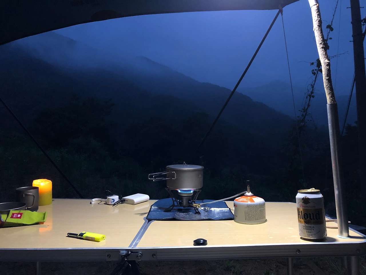 차박을 위한 별도의 준비물은 없다. 타프만 치고, 야외테이블을 설치하고 저녁 준비를 하면 끝. 그리고 지프의 뒷좌석을 접고 트렁크까지 실내 공간으로 만들면 조금은 불편하지만 훌륭한 잠자리가 만들어졌다.