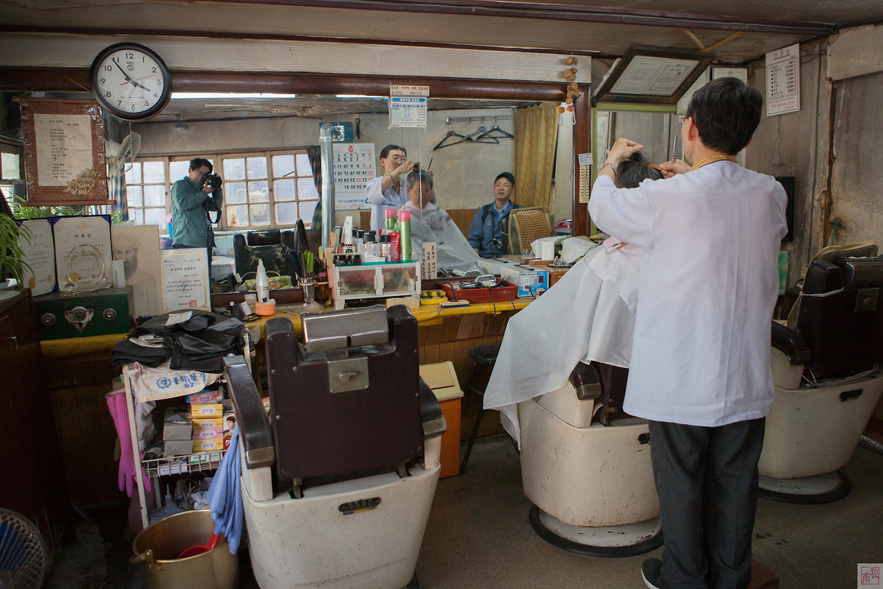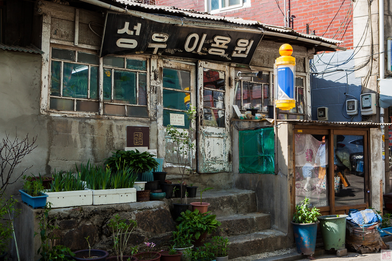 푸른 언덕을 넘어 만리재 방향으로 돌아가면 만리시장이 있다. 만리시장 건물은 원래 영화 세트장이라고 한다. 50-60년대 신상옥 감독과 최은희 배우가 영화를 찍던 역사적인 장소지만 지금은 시장으로 기능이 바뀌어 생활의 터전이 되었다. 만리시장을 지나 오르막길이 끝나는 곳에 ‘성우이용원'이 있다. 세월을 머금은 듯, 세월을 비켜간 듯 1927년부터 3대째 운영되고 있는 이발소다. 한눈에 봐도 많이 낡았다는 생각이 든다. 서울미래유산으로 등재도 되어 있다. 언론에 많이 노출되었음에도 불구하고 변한 것은 없는 것 같다. 최근에 산 도구가 족히 10년은 된다 하니 여기 모든 물건들이 골동품에 가깝다. 이남열 이발 명인의 솜씨를 느껴보고자 머리를 맡겼다. 가위질이 날렵하다. 가위질 소리가 예술이다. 하루아침에 이룰 수 없는 기술이다. 30년을 갈고닦아야 가능하다고 하신다. 도구를 갈 줄 알아야 하는데 이게 한 10년 걸린다고 하신다. 요즘 젊은이들이 배우려 하지 않는 이유이기도 하단다. 배울 수가 없는 기술이 되고 있다는 점이 안타깝다. 세월 앞에 장사가 없다는 말이 딱 들어맞는 그런 현실 앞에서 역사의 궤적을 더듬어본다. 변하지 않아서 좋은 점도 있고, 또 변해야만 좋은 점도 있다. 우리 모두 이 양 극단 사이의 어느 지점에 머물러 있지 않을까. 이런 현실이 바로 이 골목길의 매력이다.