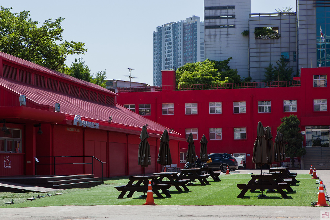 그럼에도 불구하고 청파동은 아직 많은 매력을 가지고 있다. 국립극단의 건물은 모두 붉은색으로 칠해져 있다. 한편으로는 강력하고 한편으로는 '왜?'라는 의문이 든다. 이곳은 원래 국군기무사령부 수송대가 있었던 곳으로 차고, 정비고, 막사 등의 건물이 부대 이전 이후 방치되어 있었다. 이를 극장, 연습실, 사무실로 리모델링했다. 이제는 도시재생의 멋진 문화 명소가 되었다. 군부대의 칙칙함을 연극의 열정으로 바꾸기 위해 열정적인 붉은색으로 칠한 것은 아닐까 생각해본다. 방문했을 때 연습실에서는 젊은 연극인들의 연습 열기로 가득했다.