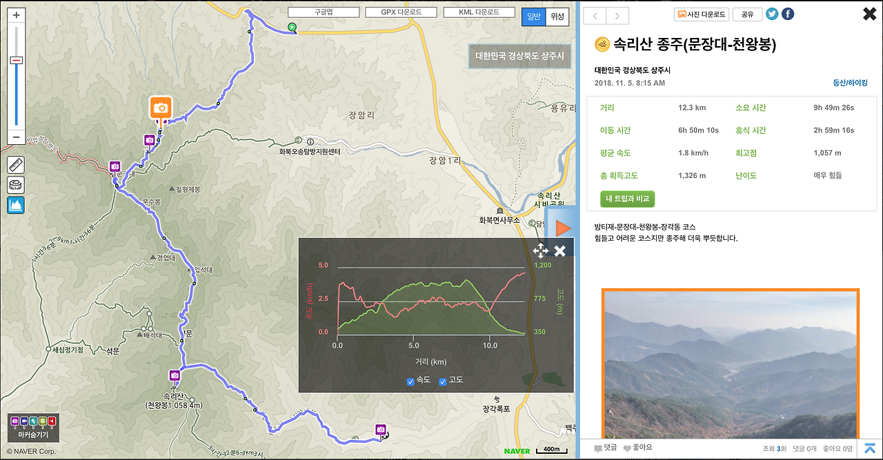 위험한 구간이 몇 군데 있긴 했지만 예상보다는 위험하지 않았다. 계획한 밤티재에서 문장대와 천왕봉을 거쳐 장각동으로 안전하게 내려왔다. 비록 예상한 시간보다는 조금 더 소요되었지만 무난한 산행이었다. 가벼운 복장과 장비로 빠르게 통과하는데 의의를 두고 ‘가볍게 멀리’ 가는 트레킹이 되도록 아침 일찍 만나서 해가 넘어가기 전에 하산을 완료하는 계획이었지만 하산에 시간이 많이 걸리먼서 땅거미가 진 이후 장각동에 도착하여 산행을 마무리했다.