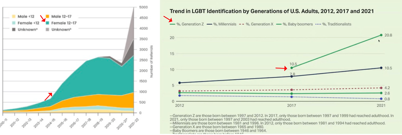 그래서 우리는 미국의 미국 소아과학회(American Academy of Pediatrics), 내분비과학회(the Endocrine Society), 소아내분비과학회(the Pediatric endocrine Society), 미국 의사 협회(the American Medical Association), 미국 심리학회(the American Psychological Association)와 미국소아청소년 정신과학회가 과학을 따르고 유렵의 의 (의학)동료을 따라 생물학적 성에 대해 고충을 경험하고 있는 아이들과 청소년을 대상으로 사회적 인정(social confirmation)/사회적 전환(social transition), 사춘기차단제, 반대성호르몬과 (성전환)수술의 홍보하는 것을 즉각 중지할 것을 촉구합니다.