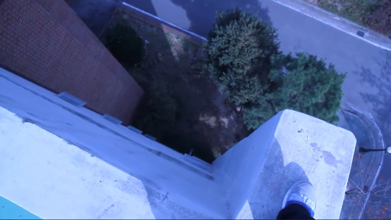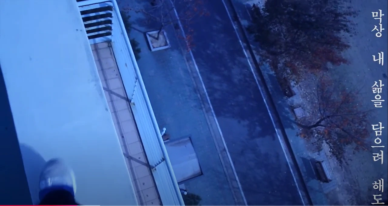 옥상 난간에서 위태위태하게 걸으며 카메라를 아래로 향해 높이를 실감나게 찍으며 생각한다.