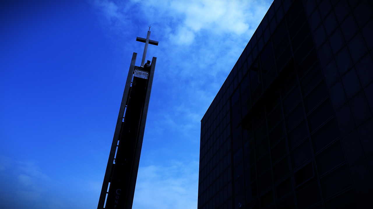 나는 촬영을 위해 장소를 교내 채플로 바꾼다.