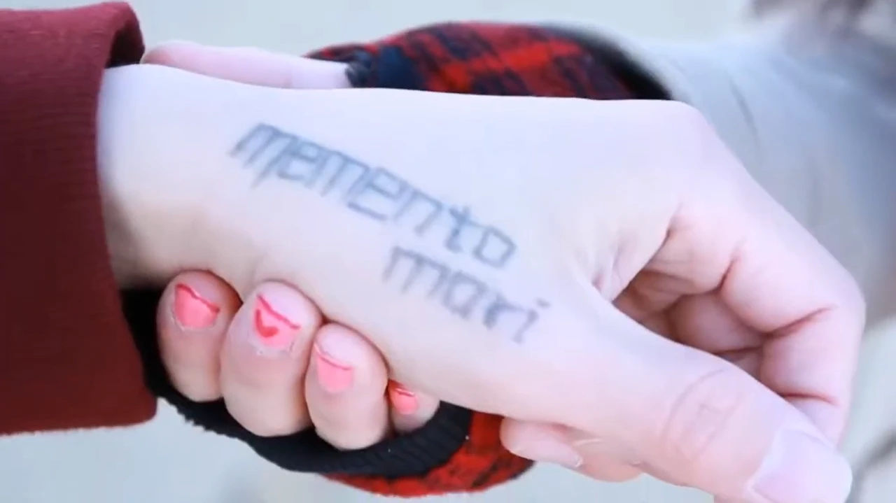 장갑을 벗은 내 손 위에는 영어로 11개의 글자가 써있다.