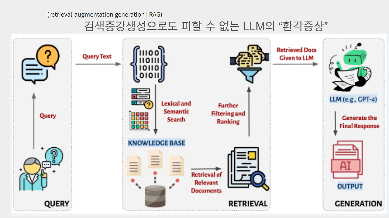 흥미로운 점은 이런 법률 전용 인공지능 모델들은 앞서 언급된 영국 법원의 사례와 같이 환각증상을 극복하기 위해 ’검색증강생성(RAG)‘라는 모델을 활용했음에도 이런 결과를 낳았다는 것이다.