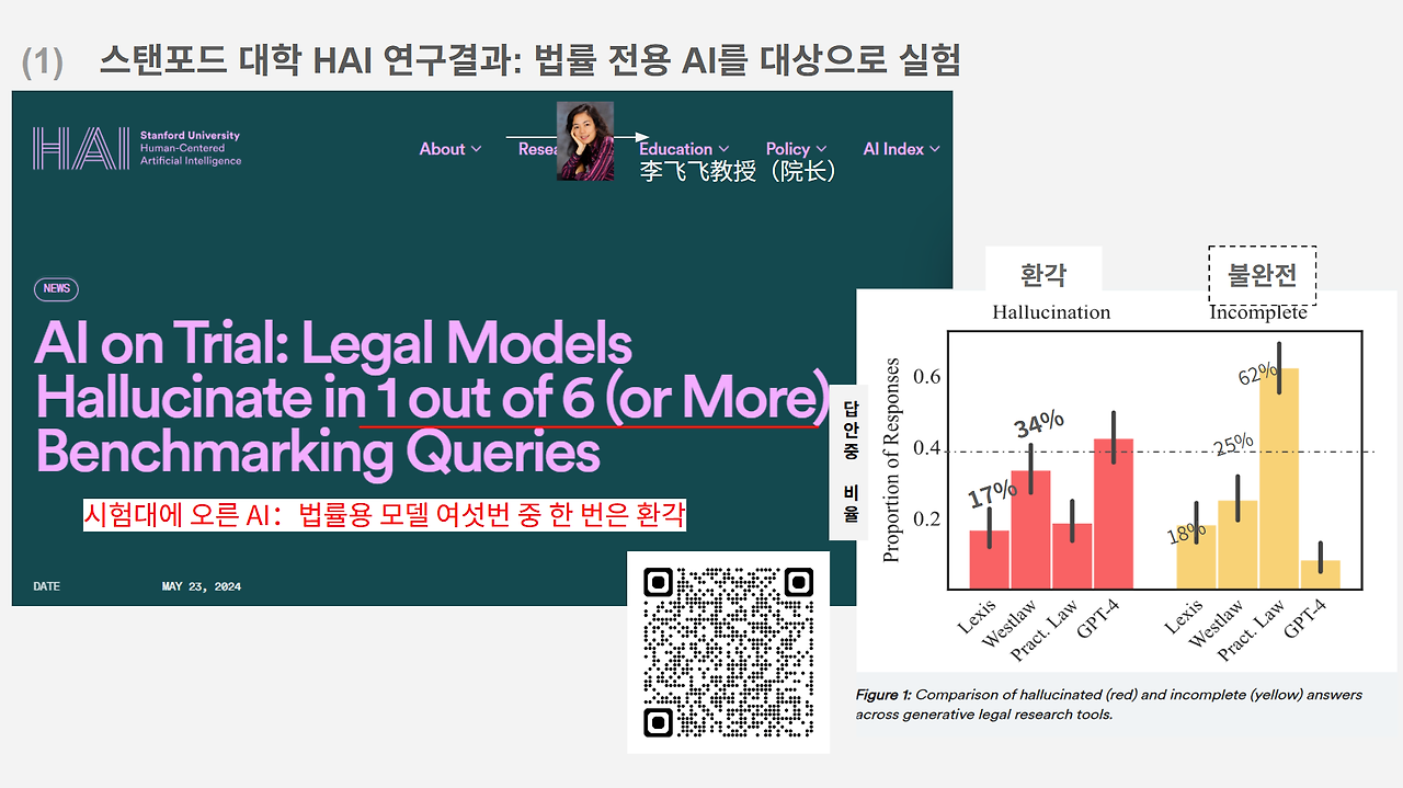 이런 법률 전용 AI모델들의 환각률은 17%에서 34%에 달했다.