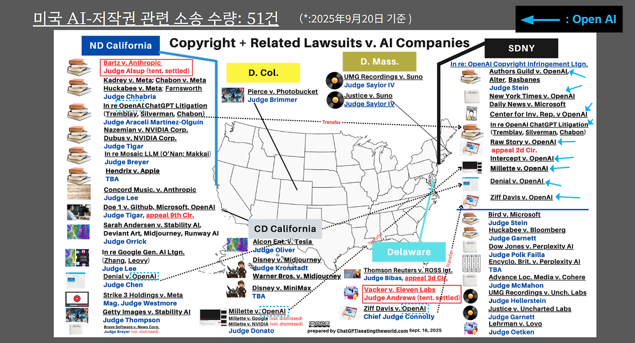 특히 TDM, Text-Data-Mining[텍스트-데이터-마이닝]에 대해서는 좀 더 ‘느슨한’ 태도의 규정이 있는 것으로 보이나 실제 소송 사례들을 보면, 인공지능회사들의 안일한 점이 느껴진다.