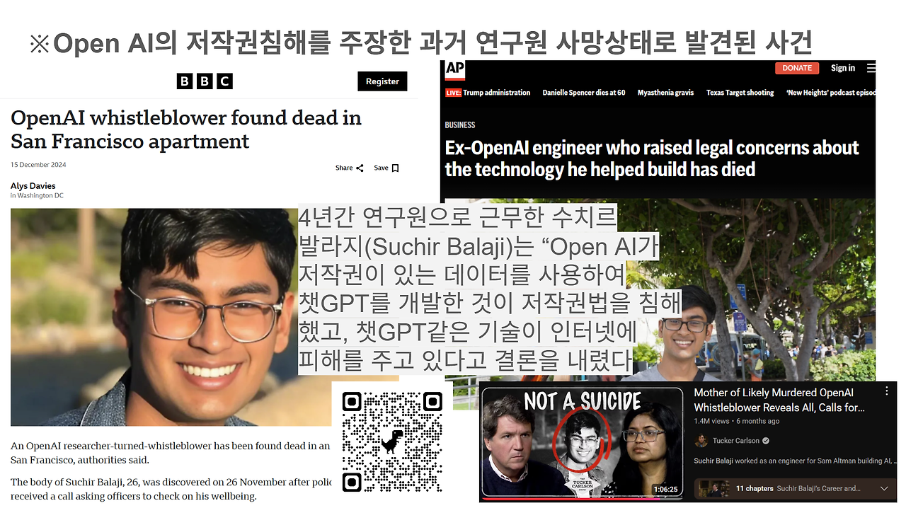 오픈AI에 대한 조사를 할 때, 한국에선 그다지 주목받지 못한 사건도 알게 되었다. .오픈AI에서 연구원으로 근무한 적 있던 직원이 뉴욕타임즈와 인터뷰를 한 후, 사망한 사건.