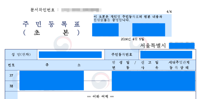 주민등록표 초본을 떼어보면 4페이지,까지 나오는 나의 주소지 변경이력.