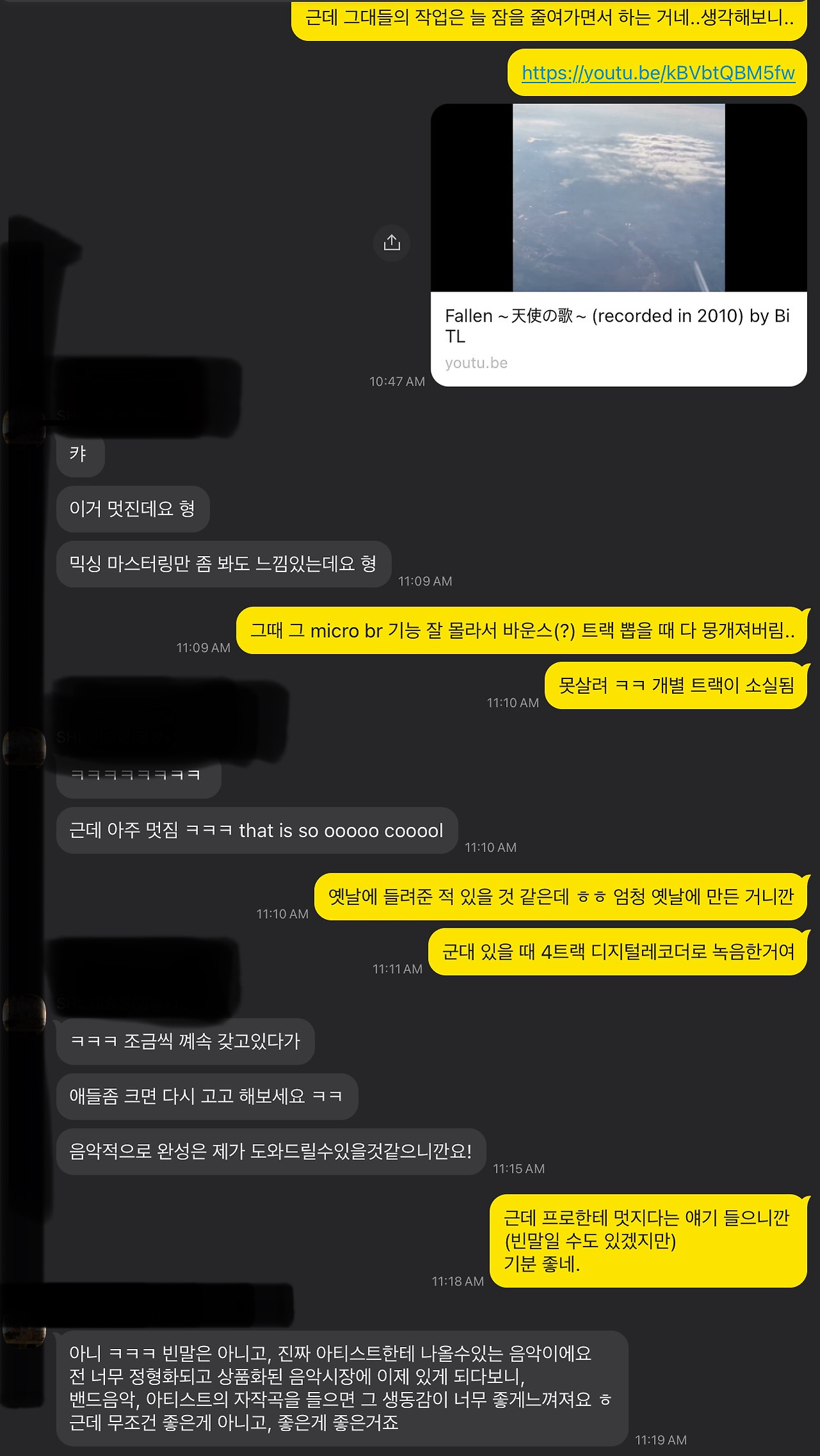 유튜브에 음원을 올리고,작곡회사에서 일하는 친구(동생)에게 카톡으로 보내봤어요.
