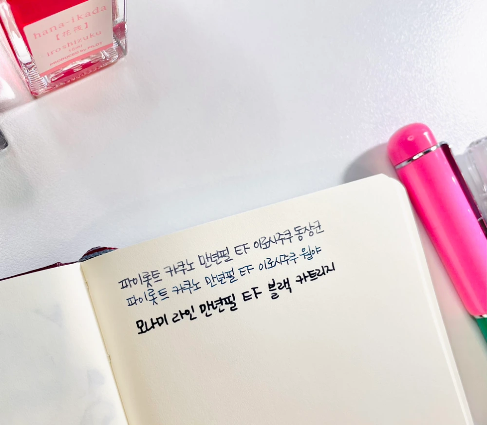 그 친구와의 약속이 다시 잡혀 나간 자리에 그 친구가 자신은 해당 만년필이 너무 좋아 두 자루를 더 샀다며 내게 보여주는 것이었다. 그리고 친구가 내민 노트에 그걸로 필기를 해 보니, 말마따나 필감이 좋았다.