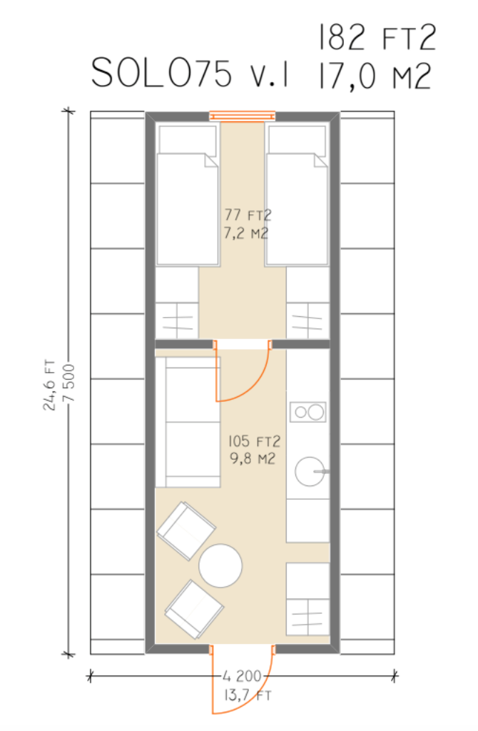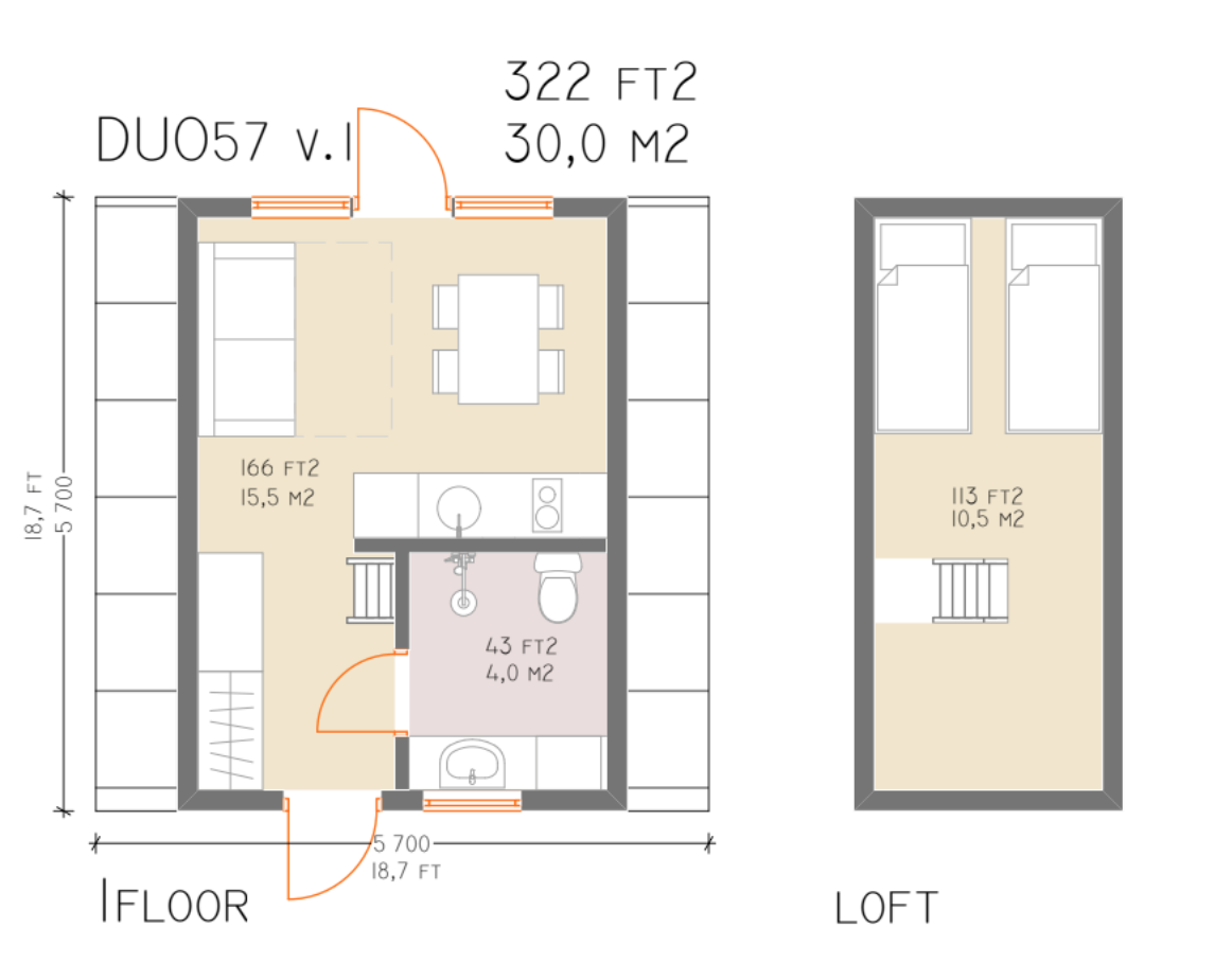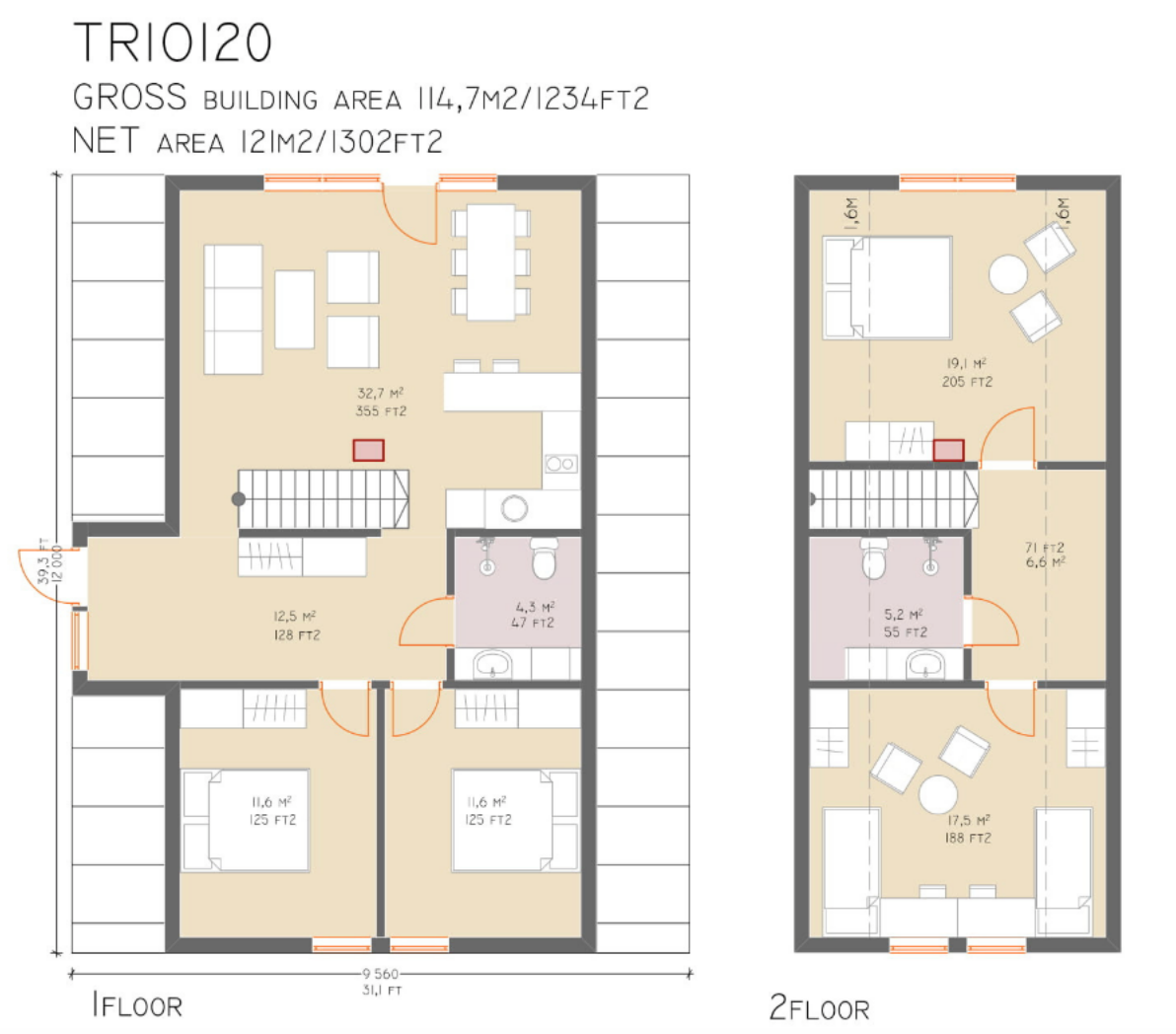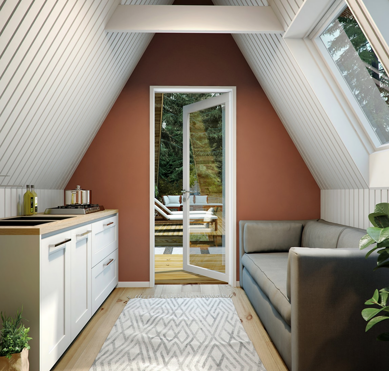 아브레임에서 판매하는 모델 시리즈는 삼각형 크기에 따라 솔로, 듀오, 트리오가 있는데 각자 길이도 여러가지다. 제일 작은 솔로57 (141 sqf = 4평)부터 제일 큰 트리오150 (1495 sqf = 42 평)까지 있다! 솔로는 정말 아기아기하게 뒷마당에 지어놓는 놀이용 집 같은 느낌이고, 듀오는 다락에 아늑하게 낑기는 침대를 둘 수 있어서 한국으로 치면 농막이나 별장, 손님용 별체로 잠시 쉬는 곳으로 적합하다. 제일 큰 트리오 시리즈는 각 변이 9미터인 정삼각형이라 2층을 오픈형으로 만들면 1층에서 층고가 7미터나 된다! 사이트에서는 트리오100 (1047 sqf = 29.4평) 부터 본격적인 집으로 추천하고 있다. 유럽 기준으로 집이 30평은 되어야 좀 집 같다고 생각하나보다. 방 갯수는 이미 정해진 구조를 선택해도 되지만 얼마든지 커스터마이징 할수 있어서 자기 취향대로 해달라고 하면 된다.