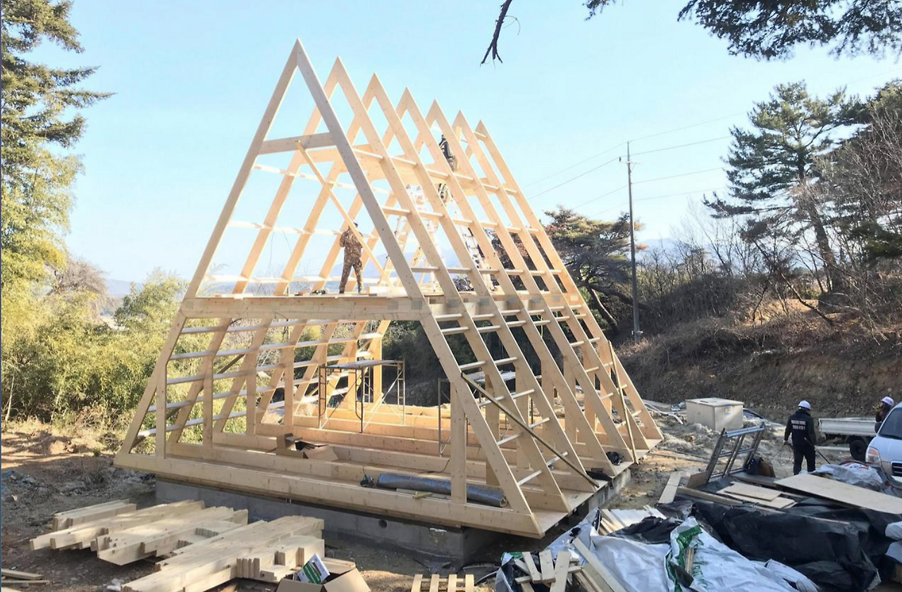 그러는 한편, 눈이 많이 와서 뾰족한 지붕집을 필연적으로 지을 수 밖에 없는 북유럽에는 지금도 A 프레임 하우스 킷트 업체들이 여전히 존재한다. 그중 하나가 에스토니아에 있는 아브레임 Avrame이라는 업체. 내가 프리페브 업체들을 쭈우우욱 훑어볼때 이곳도 물론 봤었지만, 이태리에서 모듈러를 가져오는 것도 말이 안된다고 생각했었는데, 무려 에스토니아에서 집을 배송받다니 그건 좀 아니다 했었다. 아니 당췌 에스토니아가 어디에 붙어있는 나라야?? 러시아쪽 아닌가??? (세계 지리 빵점) 그래서 아브레임은 완전히 제쳐두고 있었는데, 최근에 이 업체에서 홈킷트를 무려 한국으로 배송받아서 집을 지은 사람이 나타났다.