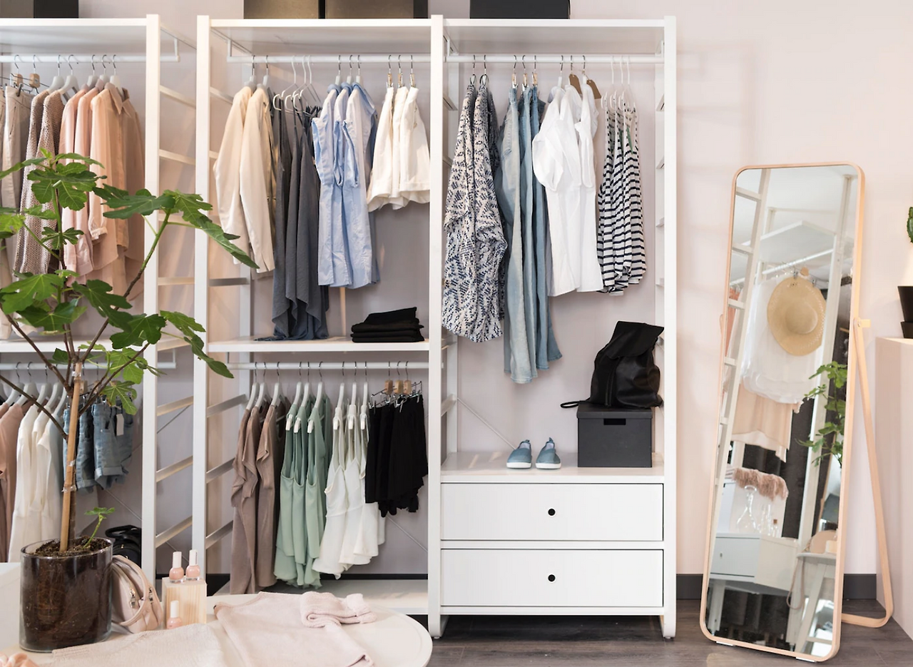 여기서 아이디어가 떠올랐다. 그냥, 세탁방과 옷방을 합치면 되는 거 아닌가?? 빨래를 해서, 그냥 옷걸이에 걸어서 오픈형 레일에서 말리는 것이다. 그리고 그게 그대로 옷장 역할을 하는 것이다. 물론 잘 마르도록 띄엄띄엄 걸어야 하기 때문에 공간을 충분히 두고. 오픈형 옷장은 예전에도 쓴적이 있어서 장단점을 잘 알고 있다. 장점은 무슨 옷이 어디에 있는지 한눈에 들어온 다는 것. 단점은 옷을 깔 별로 이쁘게 안 걸면 지저분하게 된다는 것. 근데 내 옷장은 취향상 톤이 비슷해서 대충 섞어서 걸어도 괜찮다. 그리고 드레스룸 안에 설치하는거니까 거실이나 침실에서 보일 일이 없다.