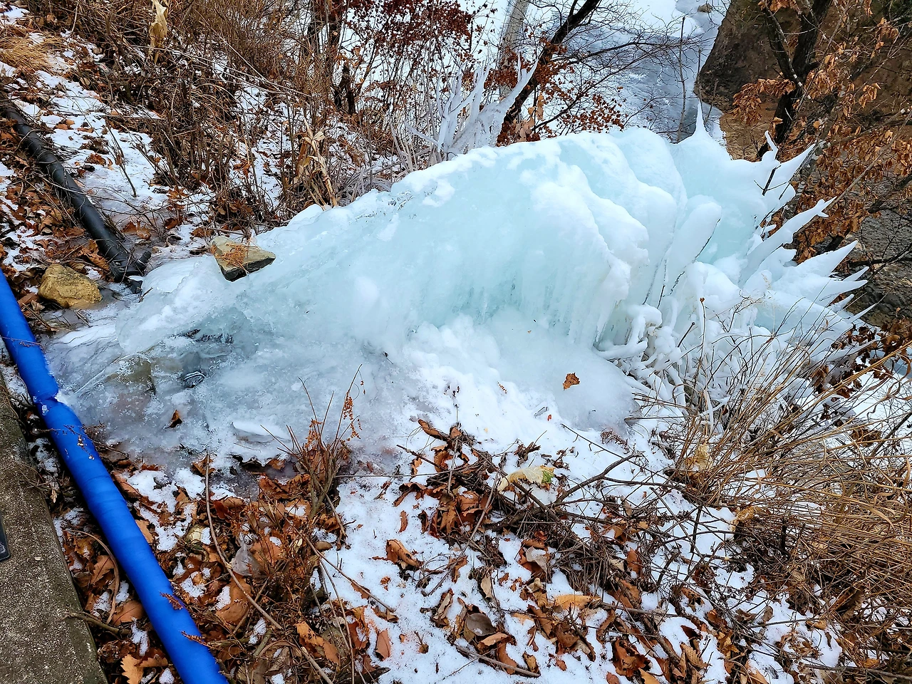 몇 년 전의 한 겨울이었다. 구멍 난 수도관에서 터져 나온 물을 얼려버린 차가움을 오랫동안 바라보았다.