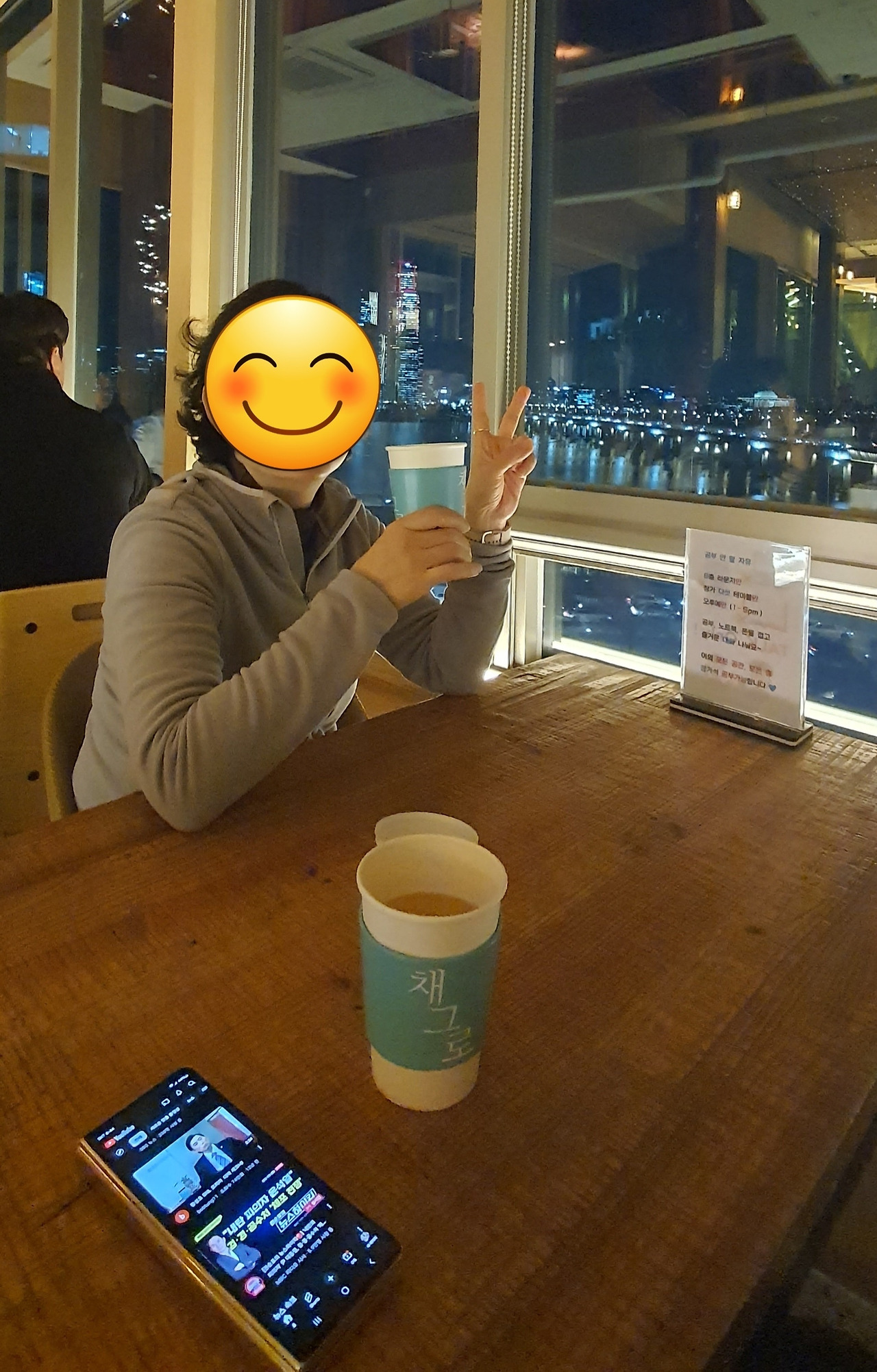 카페문을 닫을 때까지 흠뻑 한강뷰를 즐겼고 마감시간이 다 돼서야 출입문 쪽으로 향했다.