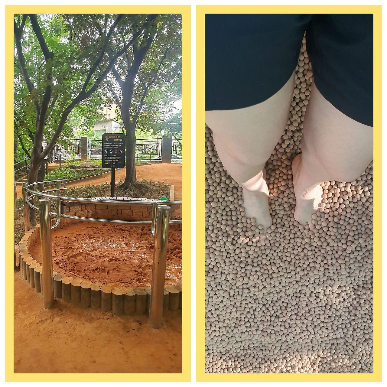 우선 작은 황토구슬이 가득한 황토볼장에 발을 담갔다.