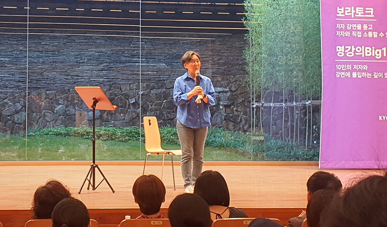 강연시작 전에 작가님은 청중들과 간단히 속마음을 나누고 계신 듯 보였다.