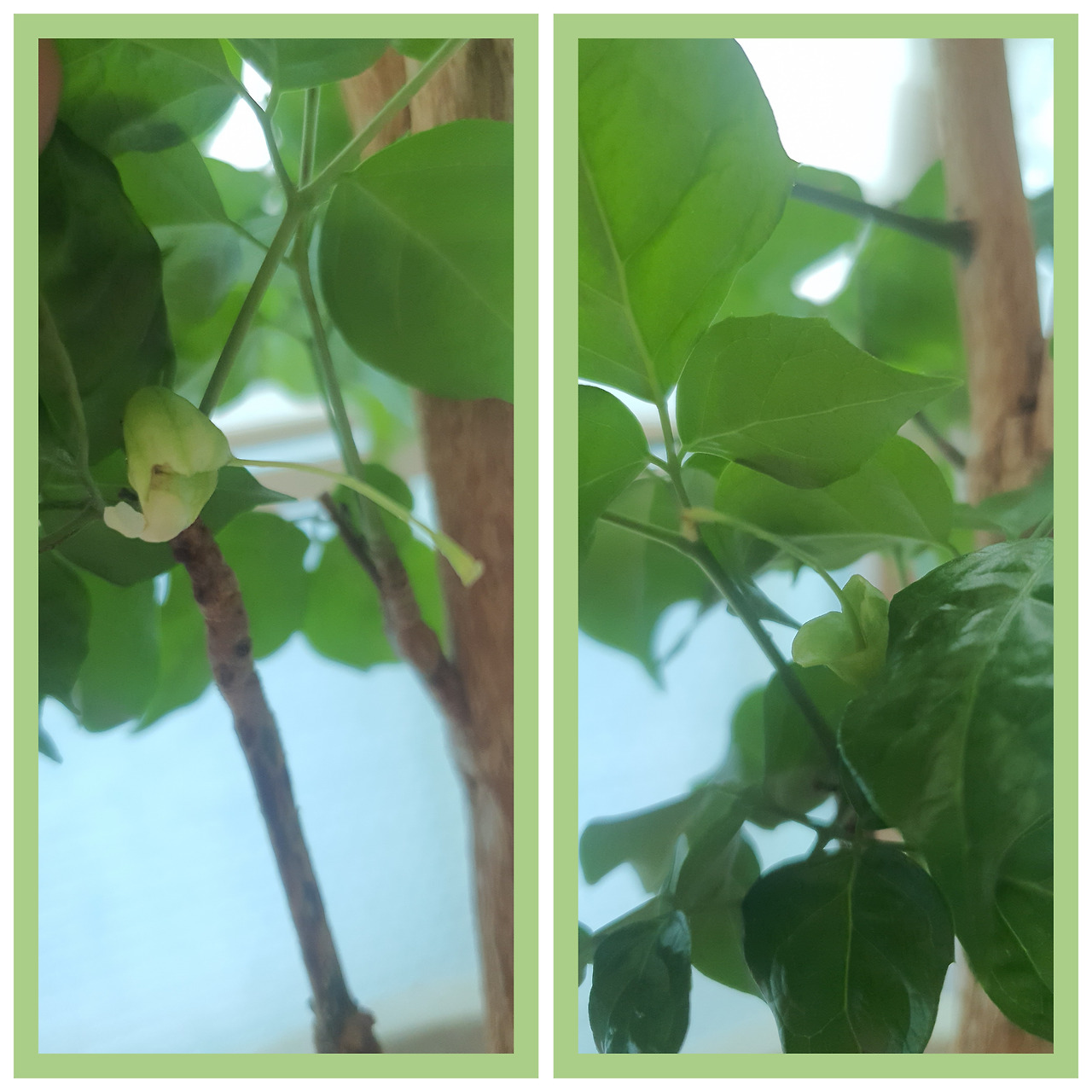 이리저리 살펴보니 녹보수 아래쪽 줄기에 남겨진 기다란 수술이 보였다.
