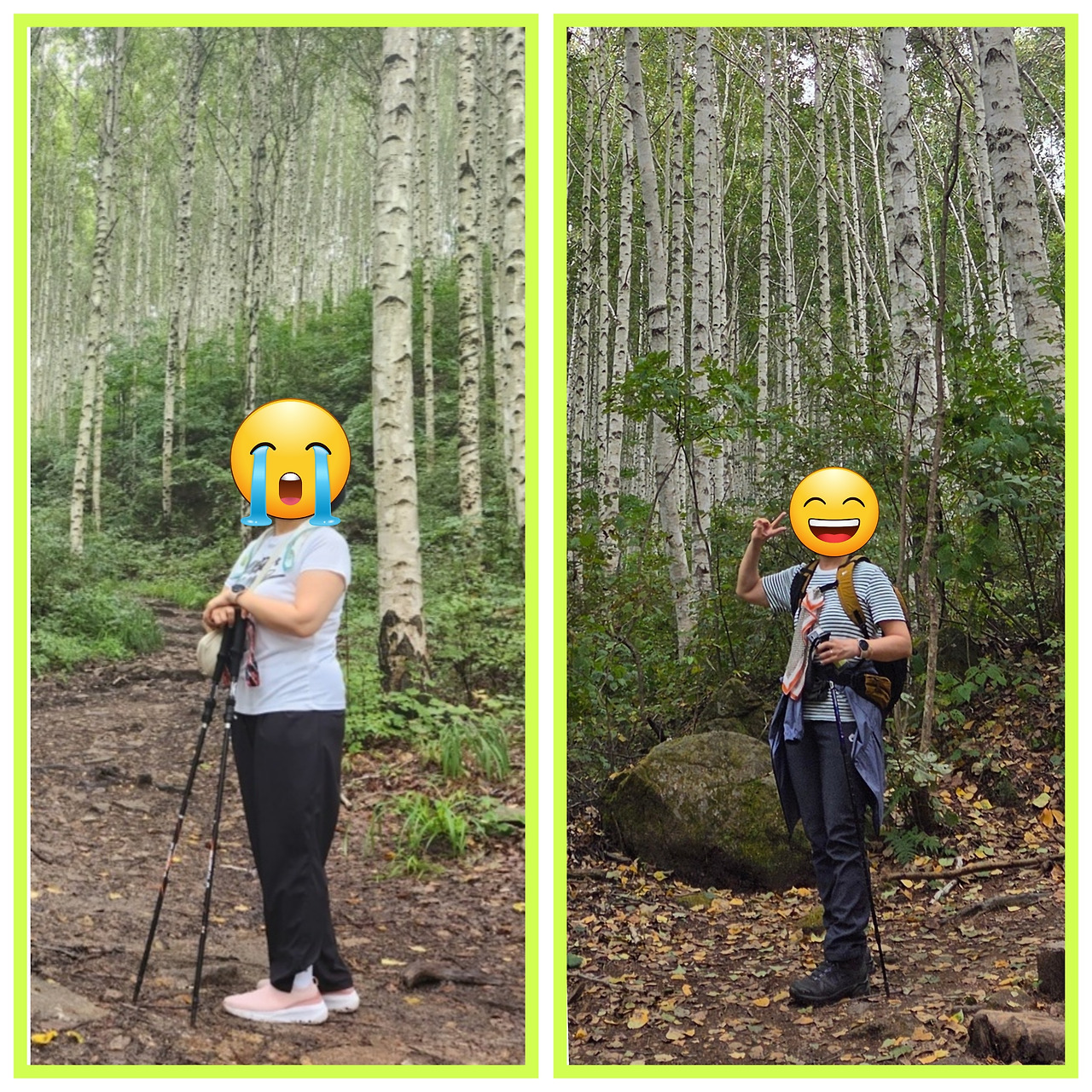 같은 사람이 자작나무숲을 배경으로 서 있었지만 누가 봐도 다이어트 전과 후의 모습이었다.