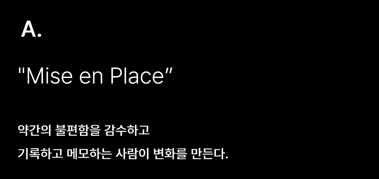 1 on 1 위해 준비하는 것이 만만치 않다. 단, 약간의 불편함을 감수하고, 기록하고 메모하는 사람이 변화를 만든다.