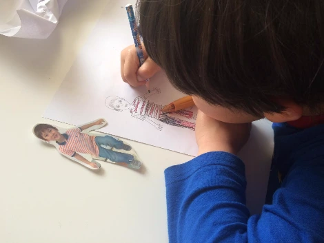가서 달래주니 본격적으로 목 놓아 울어 제끼는데...형아가 얼마나 보고 싶으면 저러나 안쓰럽기도 하면서, 내 배로 낳은 이 두 녀석들이 이렇게 사이가 좋구나 싶어 뿌듯하기도 했다. 한참 동안 눈물, 콧물을 쏙 뺀 둘째는 그날 저녁 내내 사진과 그림으로 형아 없는 슬픔을 달랬다. 일종의 '형아 금단증상' 이라고나 할까? 형아 사진을 꺼내 얼굴을 매만지고, 버스 타고 가서 형아를 만나는 그림을 그렸다. 저녁 식사 시간에는 형아 자리에 앉아 형아 사진을 보면서 밥을 먹었다.